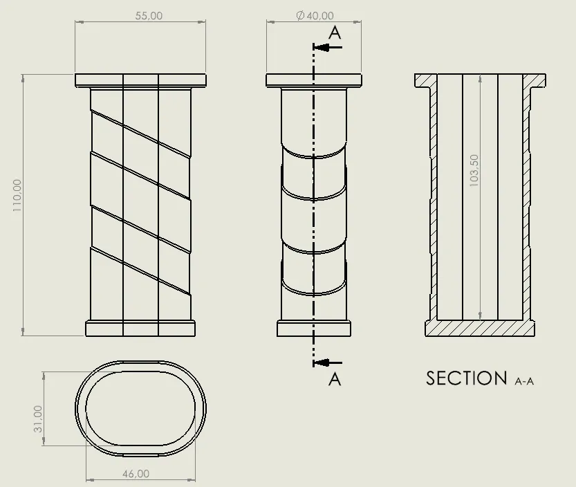 Đây là cái tay nắm xe đẩy đơn giản cho các thanh profile hình oval. Tui đã in thử bằng TPU để dễ lắp vào. File Solidworks cũng có kèm theo nếu bạn muốn chỉnh sửa cho phù hợp với xe đẩy của riêng mình.