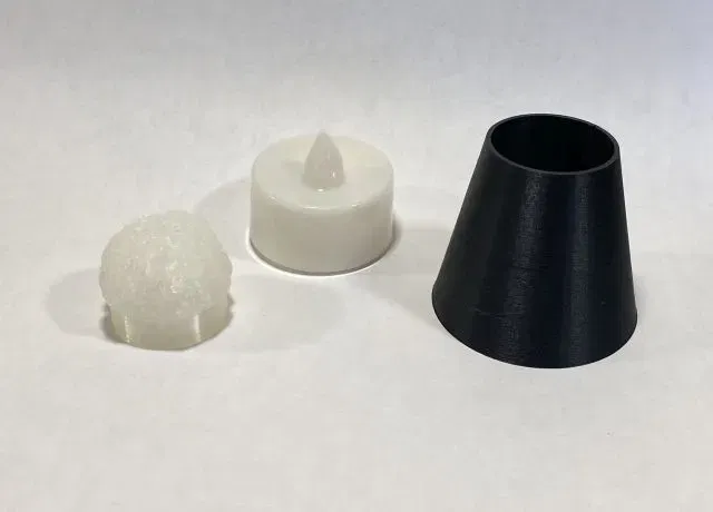 Đây là bộ não phát sáng đặt trên bệ. Sử dụng nến LED tea light tiêu chuẩn. In phần đế màu đen và phần bộ não bằng nhựa trong (clear) để tạo ra món đồ chơi bộ não phát sáng của riêng bạn. Không cần supports và nên để infill ở mức tối thiểu.