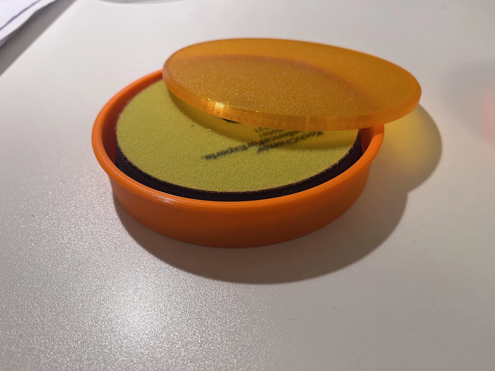 Hộp đựng đĩa đánh bóng cho máy đánh bóng quỹ đạo 125mm. Kích thước bên trong hộp là 140x25mm, in bằng PLA và nắp bằng TPU. Sử dụng đầu phun 0.6 và không cần đế.