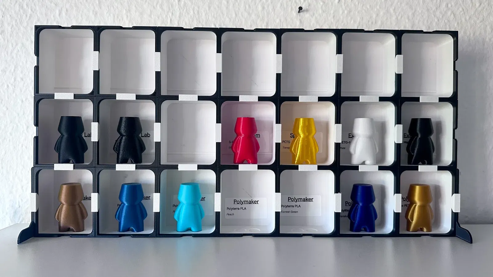 Một kệ module được thiết kế để lưu trữ các mô hình nhỏ, đặc biệt là các mẫu màu filament. Các module có thể ghép lại với nhau bằng kẹp để tạo thành hệ thống kệ vững chắc, có thể tùy chỉnh thêm chân đế.