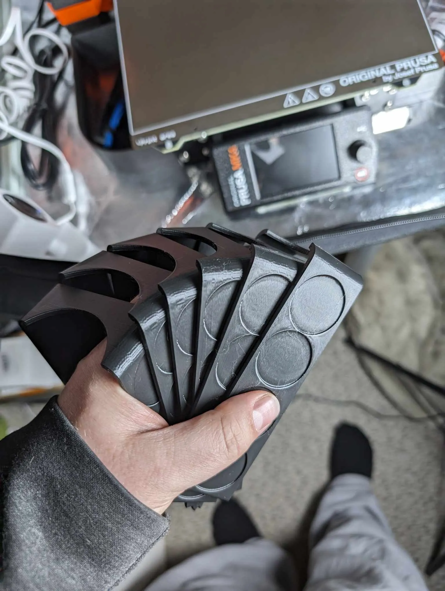 A couple stands that allow placing D&D minis above model vehicles. This was a request from a friend for his campaign and I figured I'd share. I printed them on their side with the side cutout facing upward. The circle cutout has a 28mm diameter.