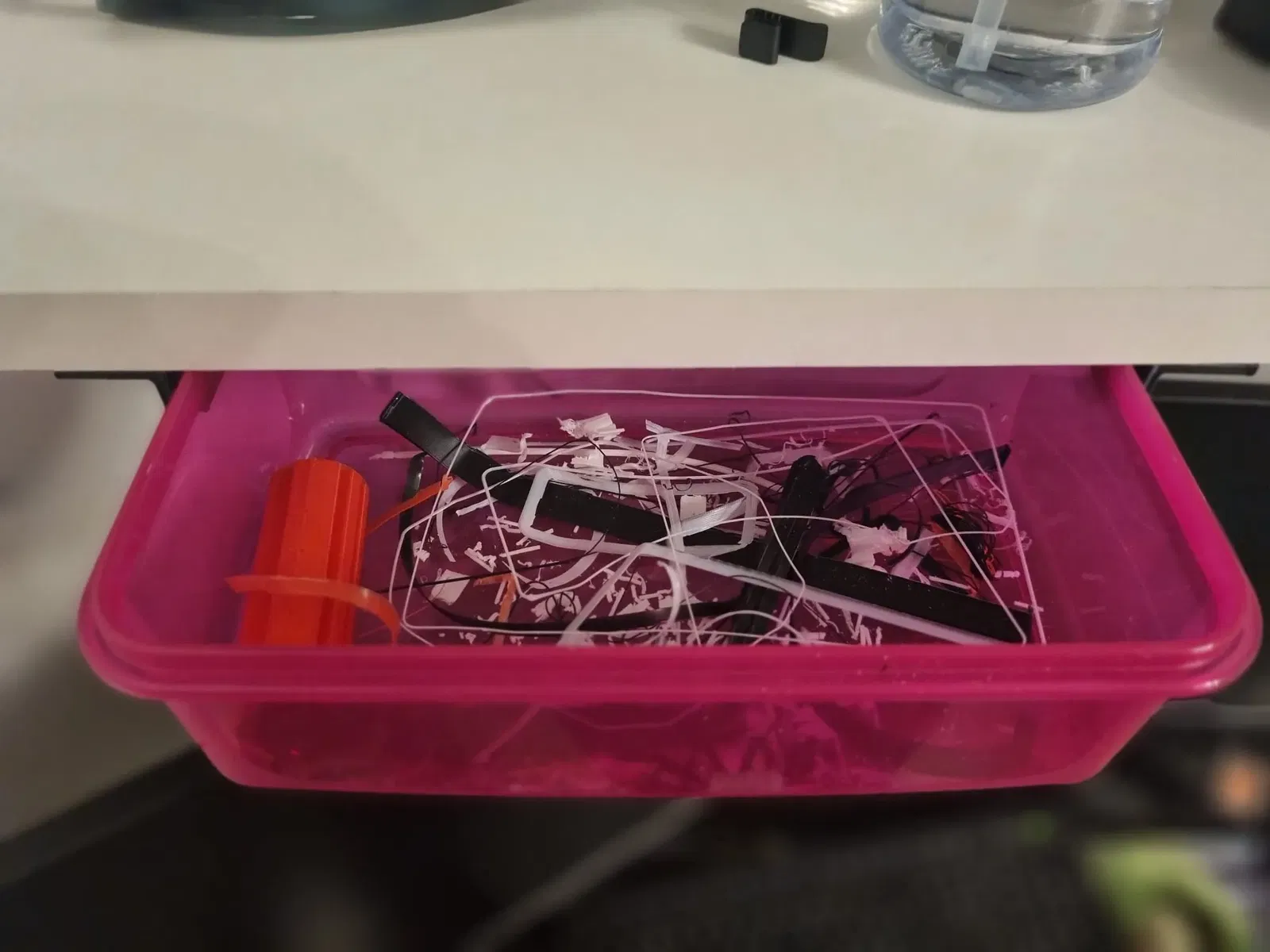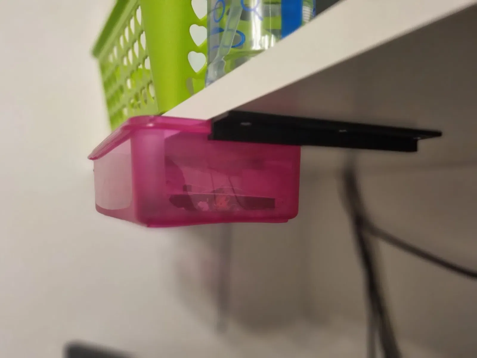 Một loại giá đỡ/hướng dẫn để đựng hộp cơm hoặc hộp đựng đồ, giúp sắp xếp gọn gàng không gian lưu trữ. Thích hợp để chứa đựng các vật dụng nhỏ, rác thải hoặc phụ kiện máy in.