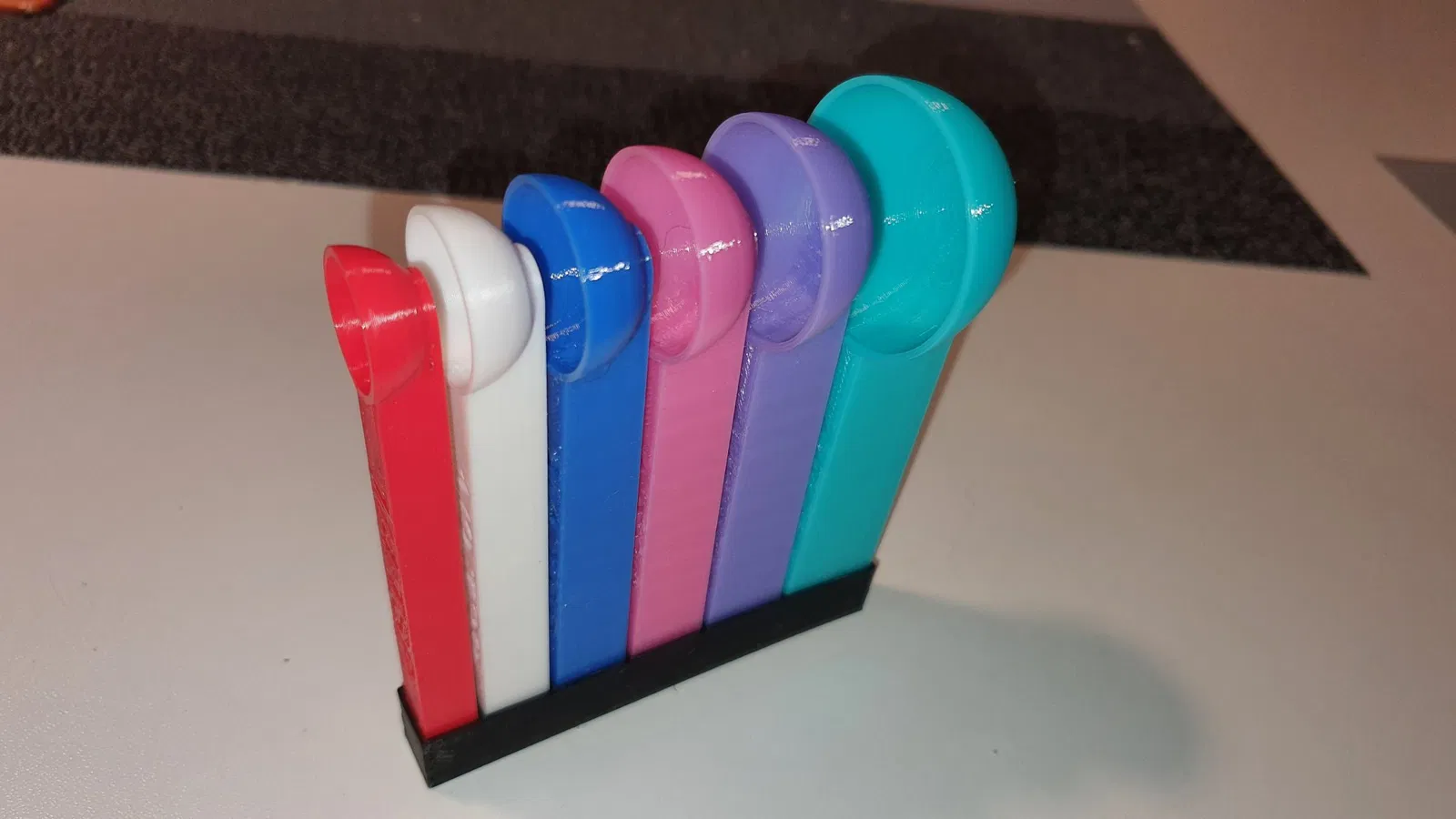 Bản remix của mẫu Thìa Đo Lường Có Đế TPU. Người thiết kế đã loại bỏ hai thìa nhỏ nhất và tạo ra một đế bằng TPU cho các thìa còn lại. Mẫu được tách thành các bộ phận riêng lẻ, cho phép in ấn với nhiều màu sắc khác nhau. Hãy Like nếu bạn thích thiết kế này!