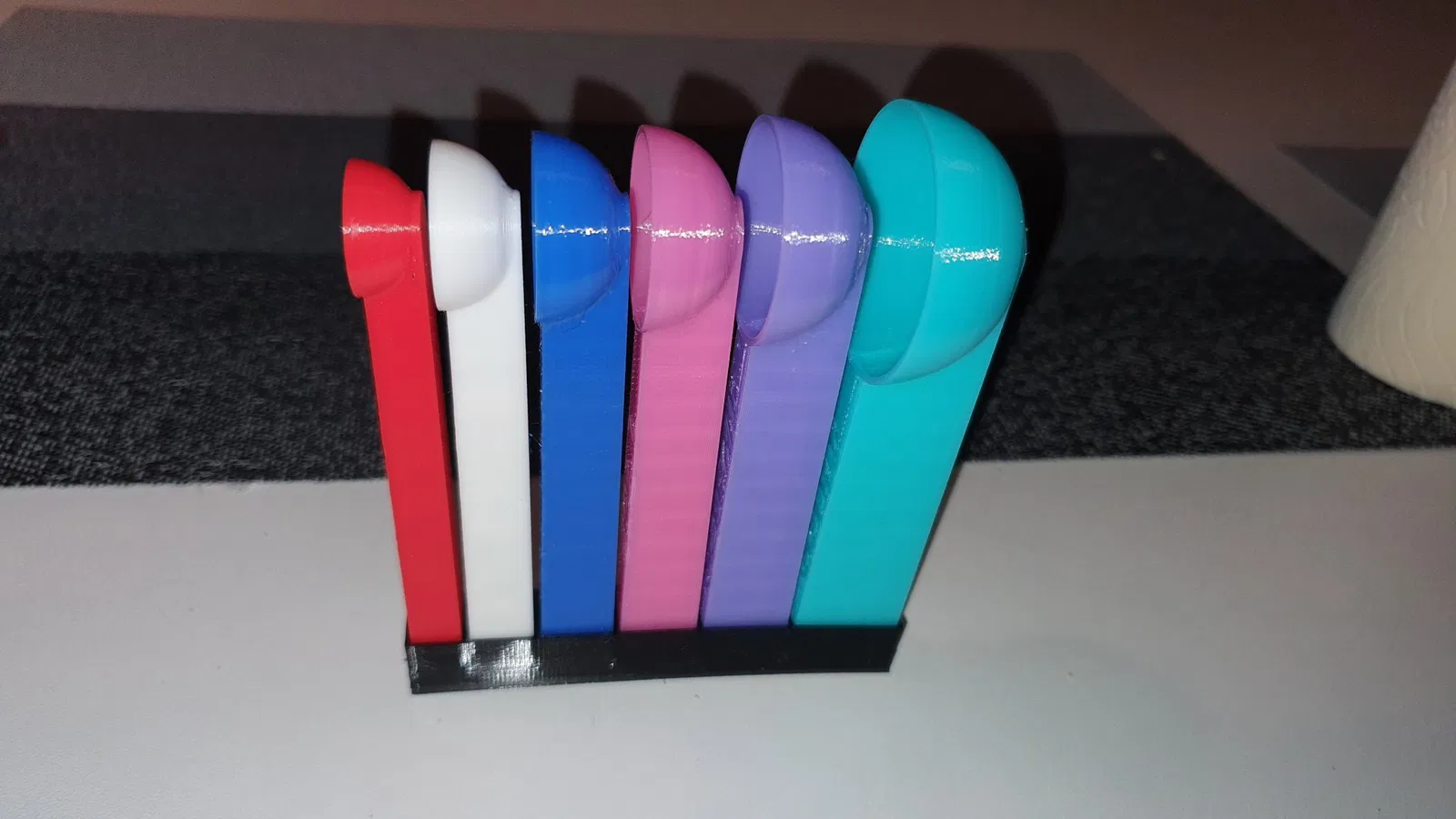 Tui bỏ 2 cái muỗng nhỏ xíu ra và thiết kế cái đế bằng TPU cho mấy cái còn lại. Tui cũng tách mẫu ra thành từng bộ phận riêng lẻ để bạn có thể in bằng nhiều màu khác nhau.