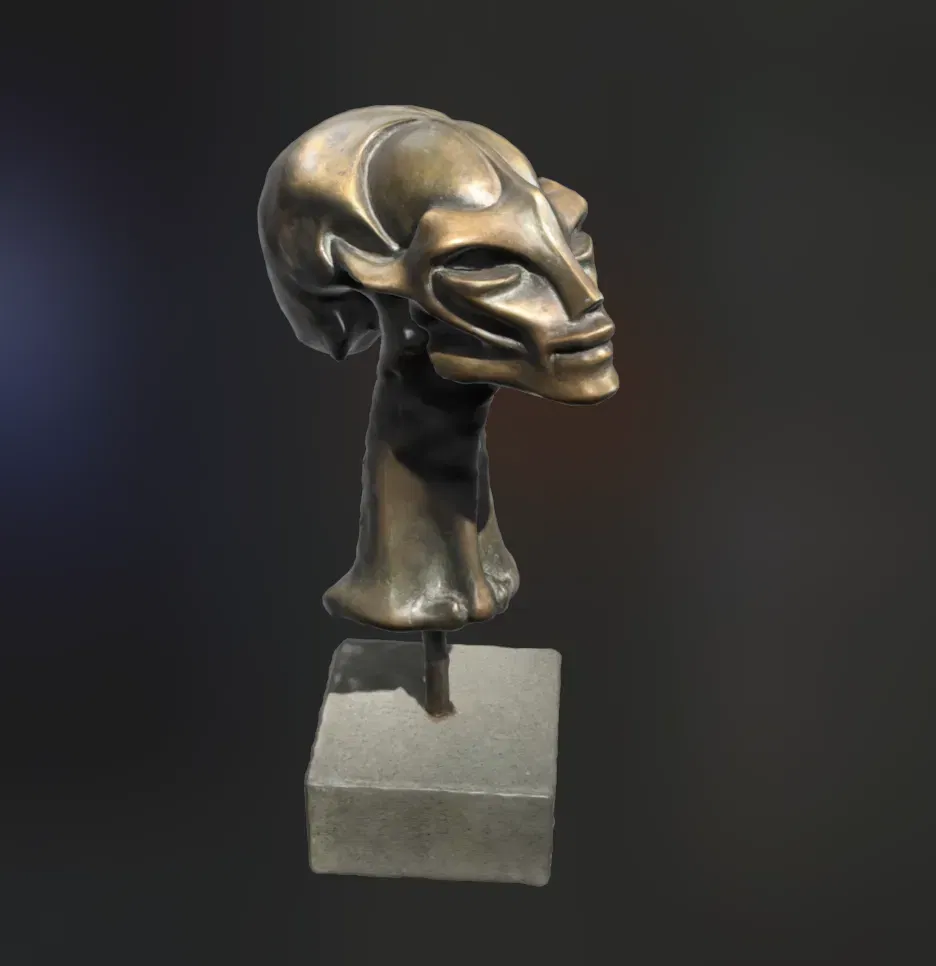 I captured the sculpture using photogrammetry, remeshed it and cleaned up in Blender and the print went fairly ok, even if a little on the low side of resolution. This was my first photogrammetry project in Blender, so I probably messed something up.