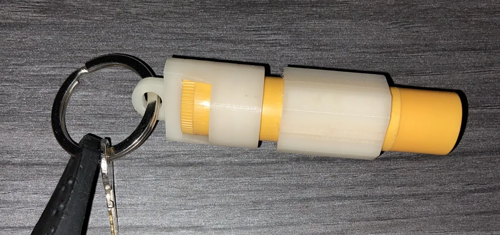 Móc khóa son dưỡng môi, thiết kế để có thể xoay núm dưới mà không cần tháo ra. Nhớ tháo sticker ra nha, phải nhét thật khít đó.