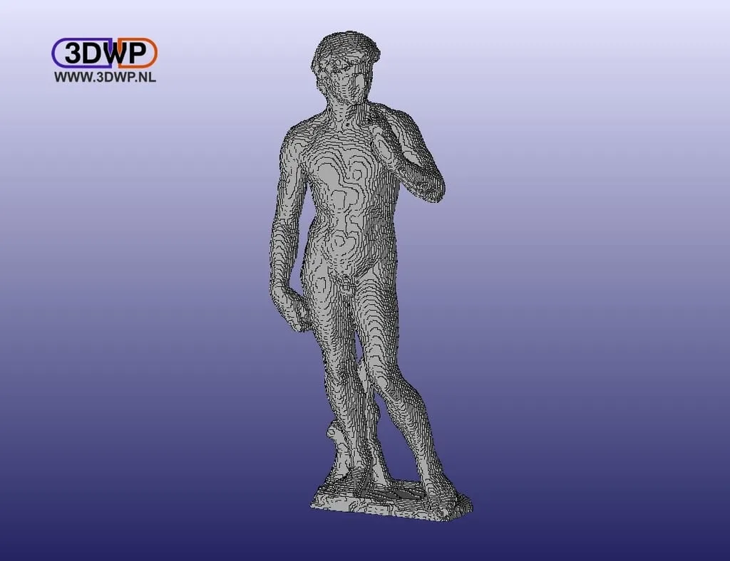 Tôi đã sử dụng công cụ ''Make Solid'' của Meshmixer để tạo ra một phiên bản khối của bức tượng David của Michelangelo ().Công cụ này lấp đầy lưới bằng các chồng khối lập phương và mang lại cho mô hình một vẻ ngoài giống như trong Minecraft.