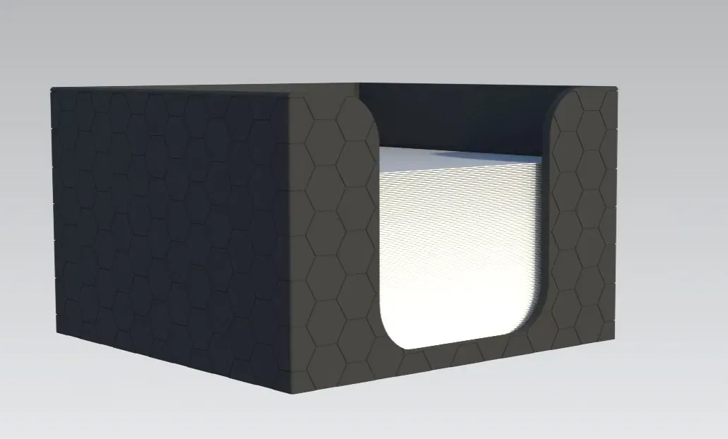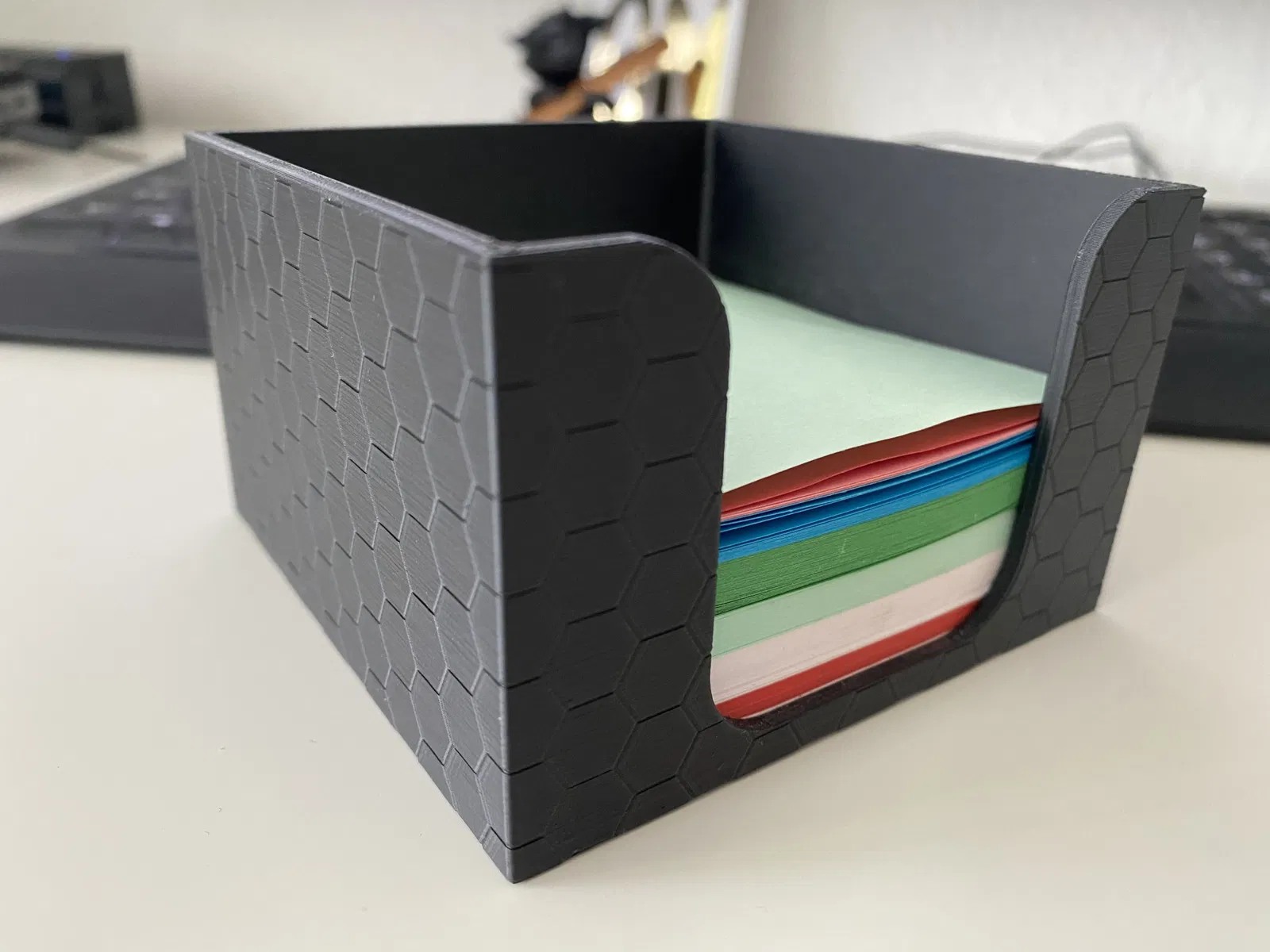 Mẫu kệ đựng giấy nhớ độc đáo với thiết kế hình tổ ong lạ mắt. Dễ dàng in ấn với file STL. Sản phẩm làm từ nhựa PLA bền chắc, phù hợp để bàn làm việc hoặc trang trí. Tải ngay về để sở hữu món đồ tiện ích này!