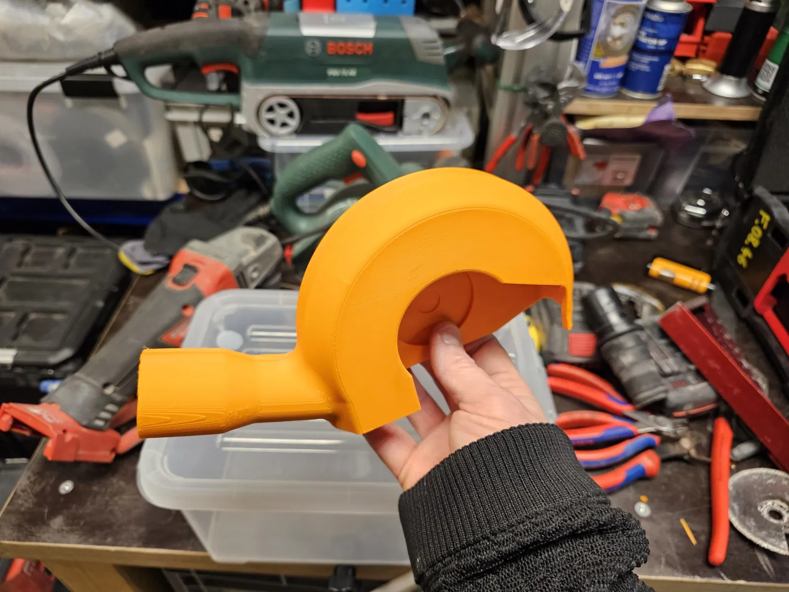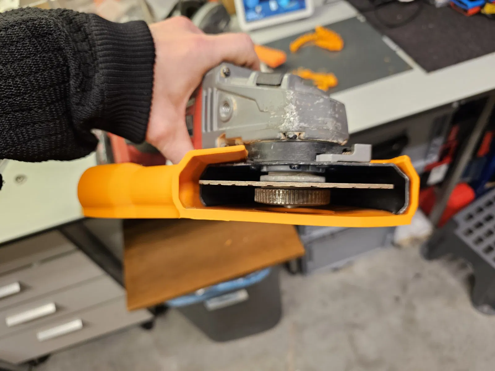 Được thiết kế để gắn vào bộ phận bảo vệ đĩa hiện có của bạn. Giữ nguyên vị trí bằng lực ma sát/kẹp. Sẽ phù hợp với hầu hết các máy mài góc chạy pin của Milwaukee (tôi dùng nó trên mẫu M18 FSAG). Hãy lưu ý rằng ngay cả khi phiên bản in của tôi có độ vừa khít chắc chắn, phiên bản của bạn có thể không vừa do hiệu chuẩn máy in và loại sợi in.