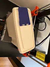 A replacement flip lid for a Rubbermaid 13-cup Bin (Cereal Box). Use your own judgment for food safety but I figured contact should be minimal. I used PETG with 0.2mm layer height.