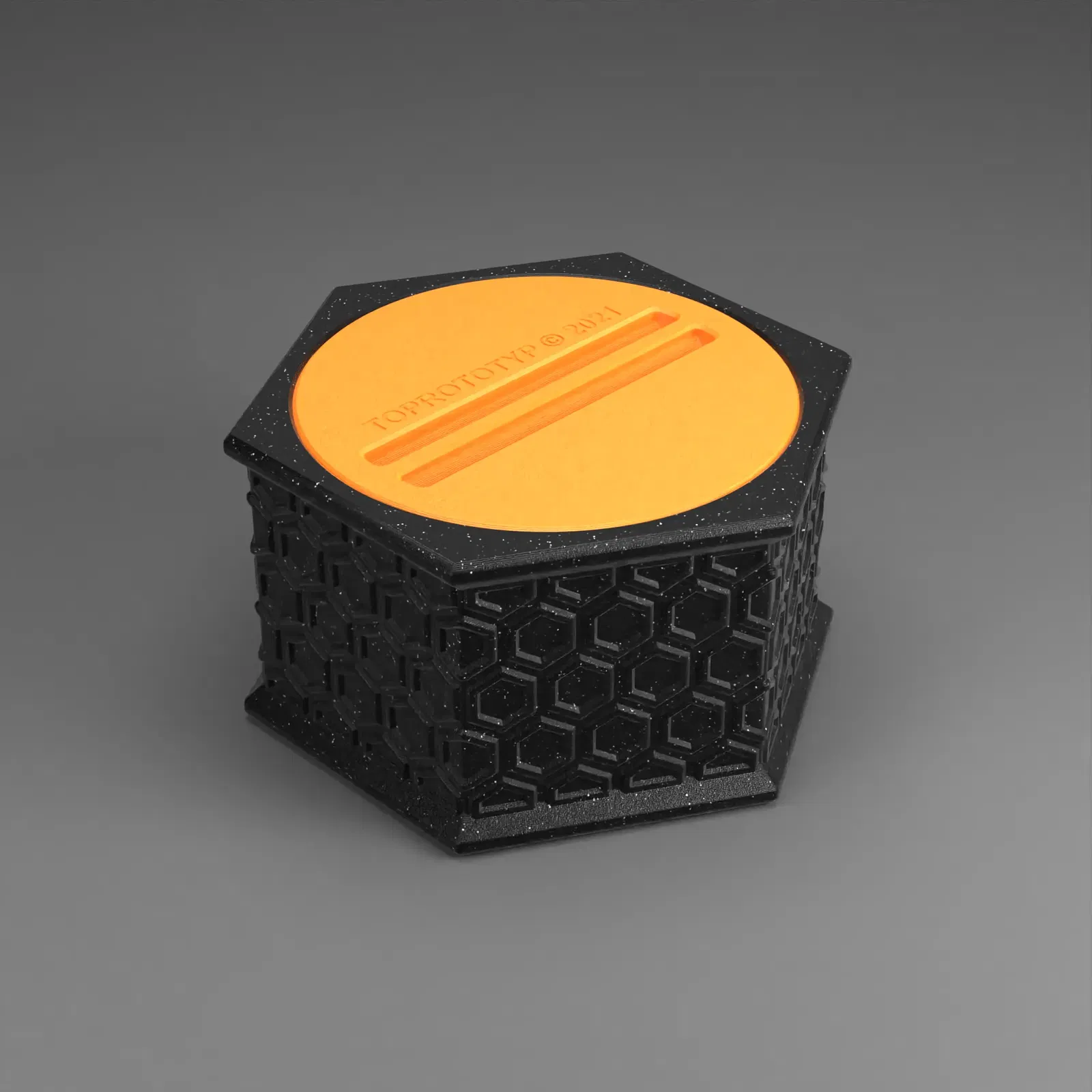 Mô hình heo đất hình lục giác hiện đại, có khe bỏ tiền và nắp vặn. Thích hợp để in 3D với các cài đặt gợi ý về hướng, tỷ lệ, nhiệt độ, chiều cao lớp, đường viền, độ đặc ruột, brim và supports. Lưu ý: chỉ sử dụng cá nhân, cấm phân phối lại file hoặc bán sản phẩm in.