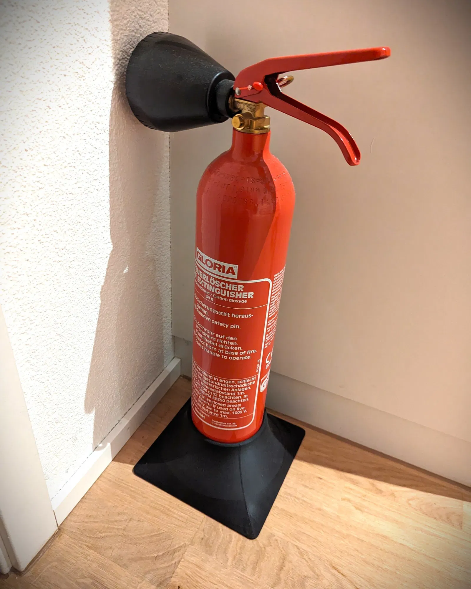 Chân đế đơn giản giúp đặt bình chữa cháy ở bất kỳ đâu. Mẫu này được thiết kế cho bình chữa cháy có đường kính 10cm, nhưng có thể tùy chỉnh dễ dàng. In với 3 lớp vỏ ngoài và 20% độ đặc ruột.