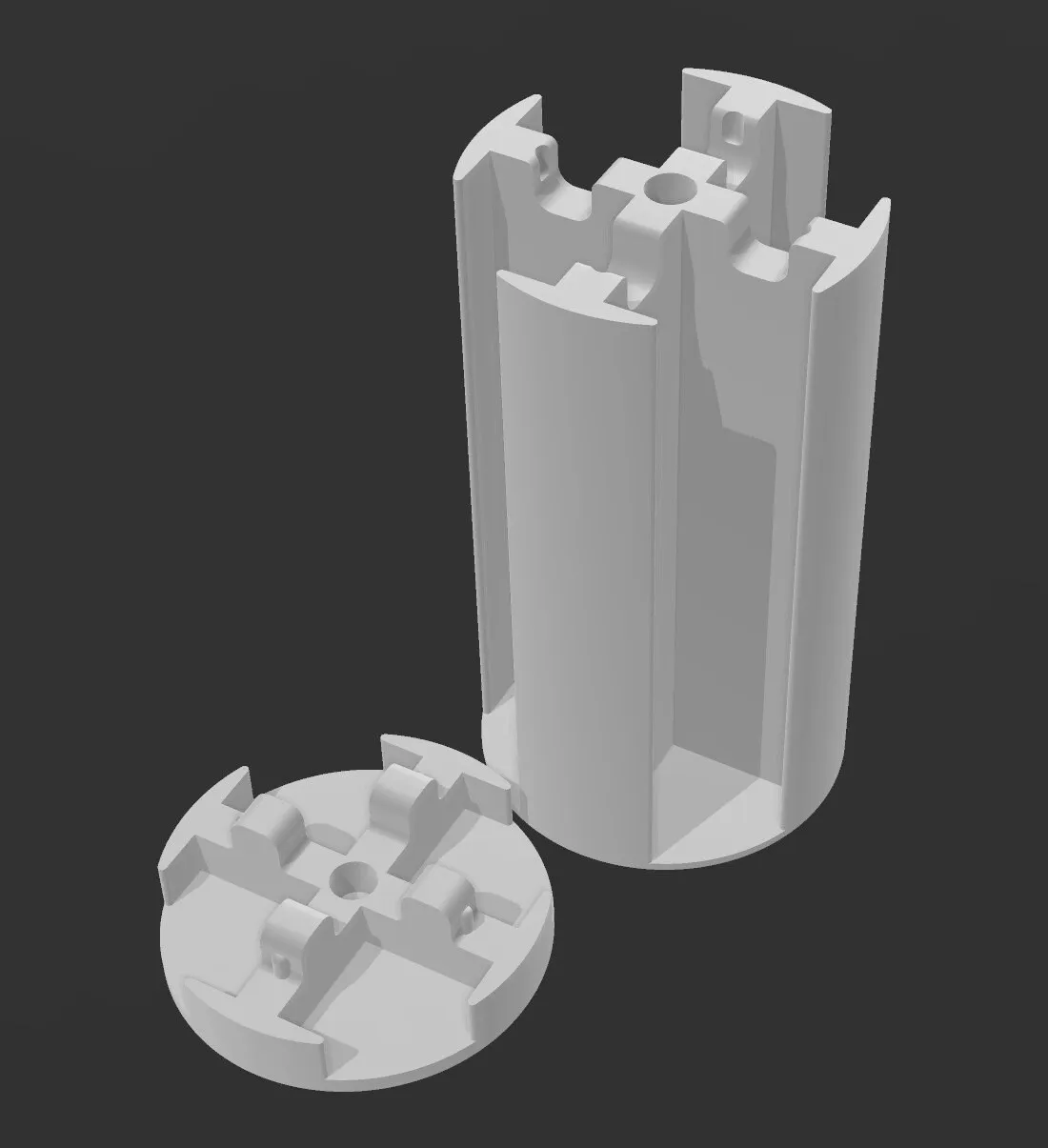 Tháp hộp tròn đơn giản với các lỗ cho nam châm để đóng an toàn.