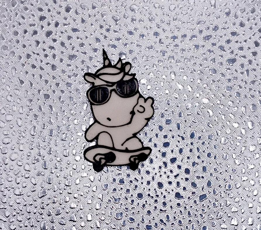 Mô hình huy hiệu/móc khóa hình Kỳ Lân cưỡi ván trượt độc đáo. Không cần support, có thể in đa màu sắc. Tự do sáng tạo với thiết kế này!