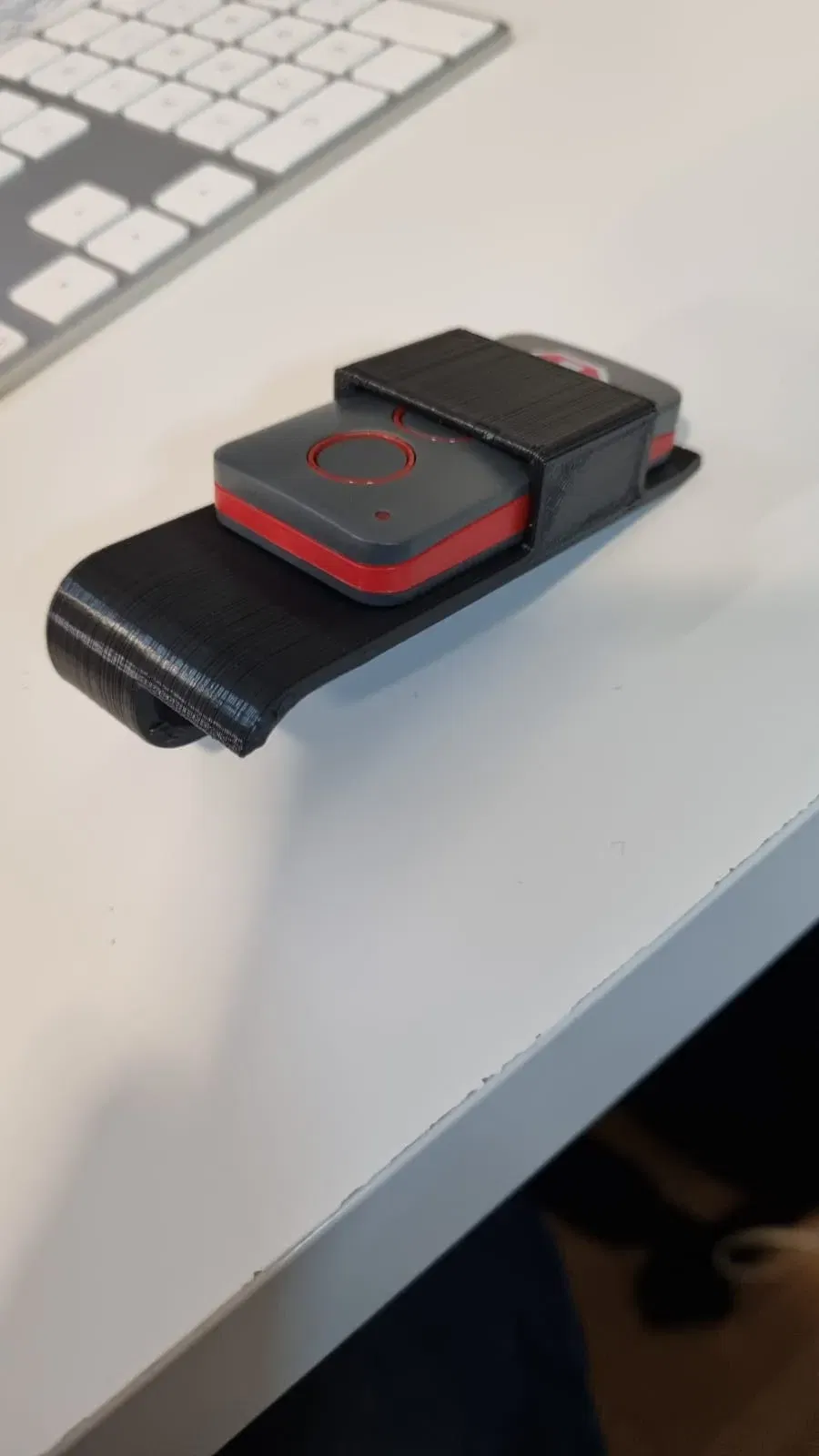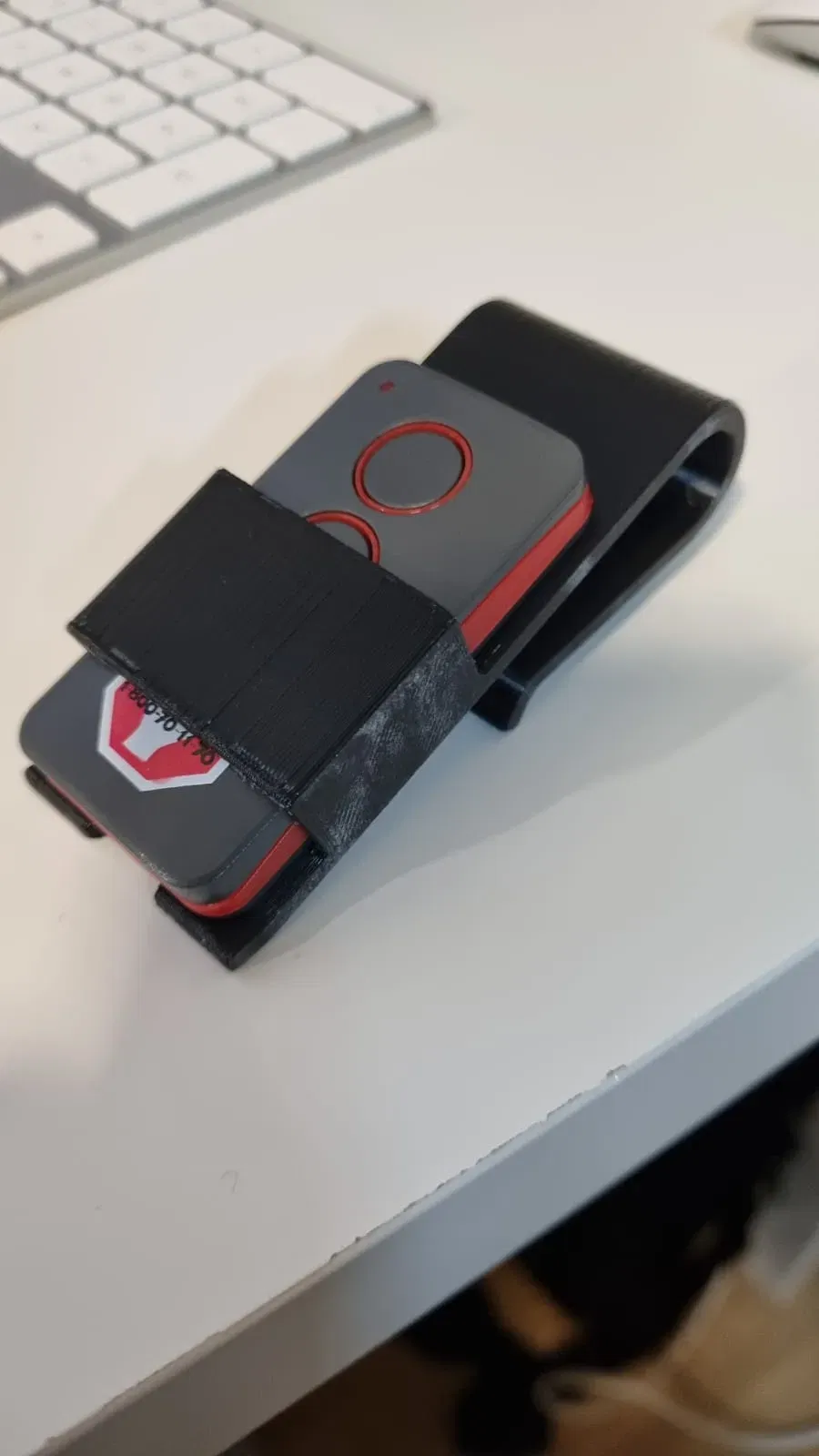 Kẹp giữ remote cửa cuốn, kích thước 33*10.8mm. Để đảm bảo độ bền, nên in theo chiều ngang để tránh lực ép tác động trực tiếp lên các lớp in, hạn chế nguy cơ bị gãy.