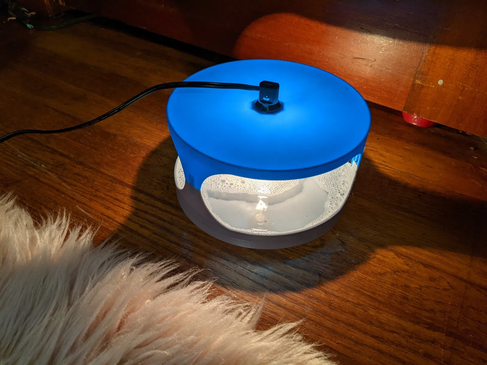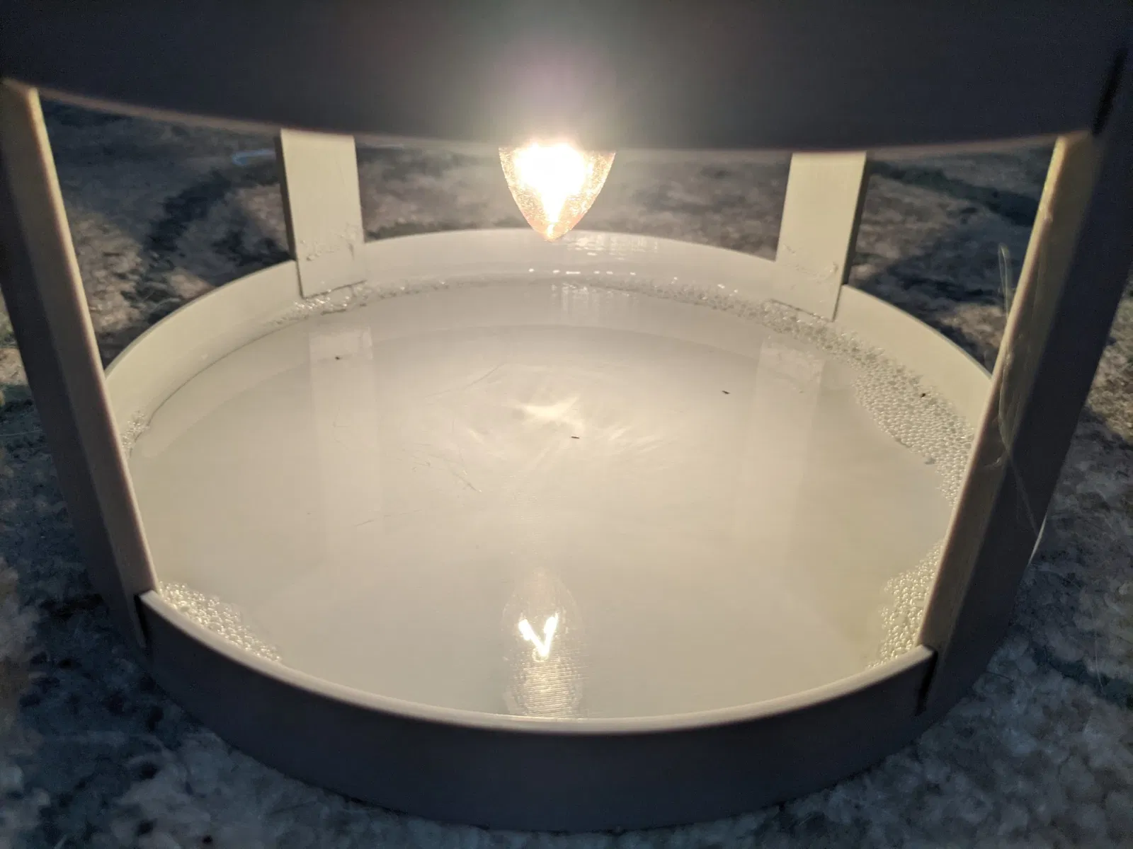 Bóng đèn E12. Bóng đèn sợi đốt kiểu cũ (Màu xanh) hoạt động tốt nhất vì chúng tạo ra nhiều nhiệt hơn đèn LED. Tôi đã đọc một số tài liệu về điều này. Ánh sáng màu xanh hoạt động tốt nhất và nếu bạn có thể làm cho nó nhấp nháy thỉnh thoảng thì càng tốt. Nó đánh lừa bọ chét nghĩ rằng có điều gì đó vừa đi qua giữa chúng và ánh sáng và tạo ra bóng. Vì vậy, chúng nhảy lên.