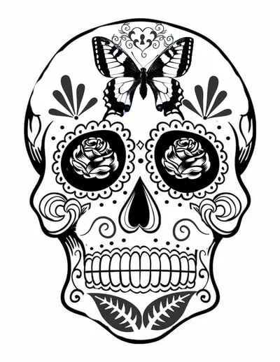 A calavera (Spanish – pronounced [kalaˈβeɾa] for "skull"), in the context of Day of the Dead, is a representation of a human skull or skeleton. The term is often applied to edible or decorative skulls made (usually with molds) from either sugar (called Alfeñiques) or clay, used in the Mexican celebration of the Day of the Dead (Spanish: Día de Muertos) and the Roman Catholic holiday All Souls' Day. Calavera can also refer to any artistic representations of skulls or skeletons, such as those in the prints of José Guadalupe Posada, or to gifts or treats in relation to the Day of the Dead. Some widely known calaveras are created with cane sugar, decorated with items such as colored foil, icing, beads, and sometimes objects such as feathers. They range in multiple colors.