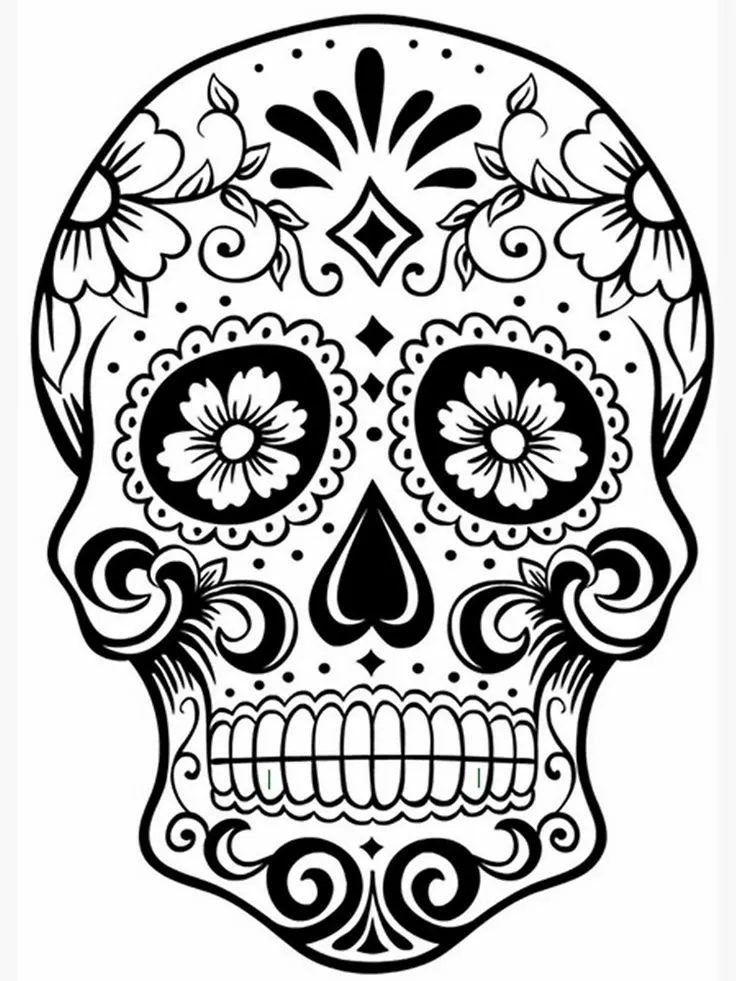 A calavera (Spanish – pronounced [kalaˈβeɾa] for "skull"), in the context of Day of the Dead, is a representation of a human skull or skeleton. The term is often applied to edible or decorative skulls made (usually with molds) from either sugar (called Alfeñiques) or clay, used in the Mexican celebration of the Day of the Dead (Spanish: Día de Muertos) and the Roman Catholic holiday All Souls' Day. Calavera can also refer to any artistic representations of skulls or skeletons, such as those in the prints of José Guadalupe Posada, or to gifts or treats in relation to the Day of the Dead. Some widely known calaveras are created with cane sugar, decorated with items such as colored foil, icing, beads, and sometimes objects such as feathers. They range in multiple colors.