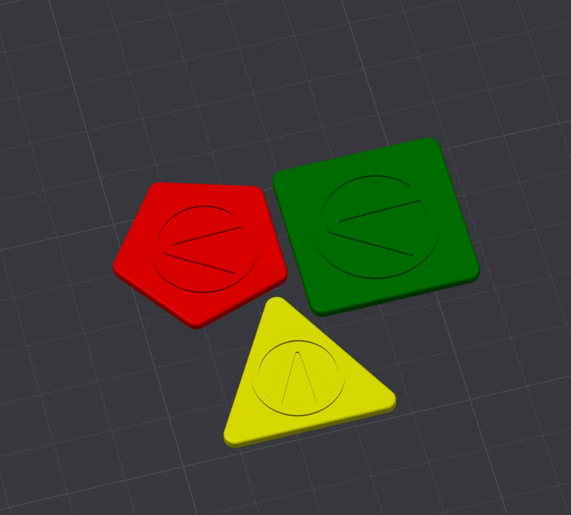 Mấy cái token hành động đơn sắc đơn giản, anh em có thể in ra để theo dõi lượt hành động của VH (Vault Hunter) mình khi chơi game.