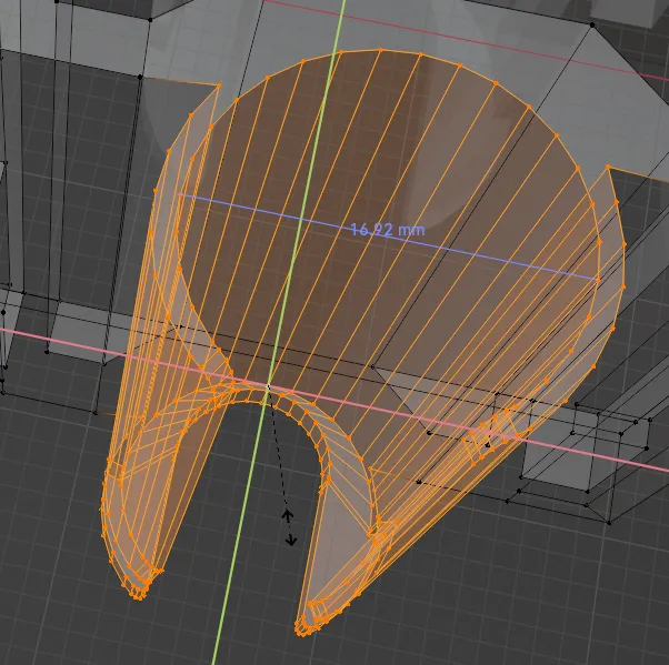 Nếu cần chỉnh sửa mẫu cho các kích cỡ nhỏ hơn, trong Blender làm dễ lắm: chọn hết các đỉnh của phần hình tròn, rồi chọn một đỉnh ở phía sau làm điểm xoay, sau đó chỉnh kích thước theo hướng X và Y.