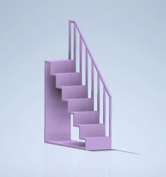 Một chiếc cầu thang đơn giản nhưng đẹp mắt cho nhà búp bê. Kích thước gốc 140mm x 207mm x 50mm, sử dụng 69g vật liệu in.