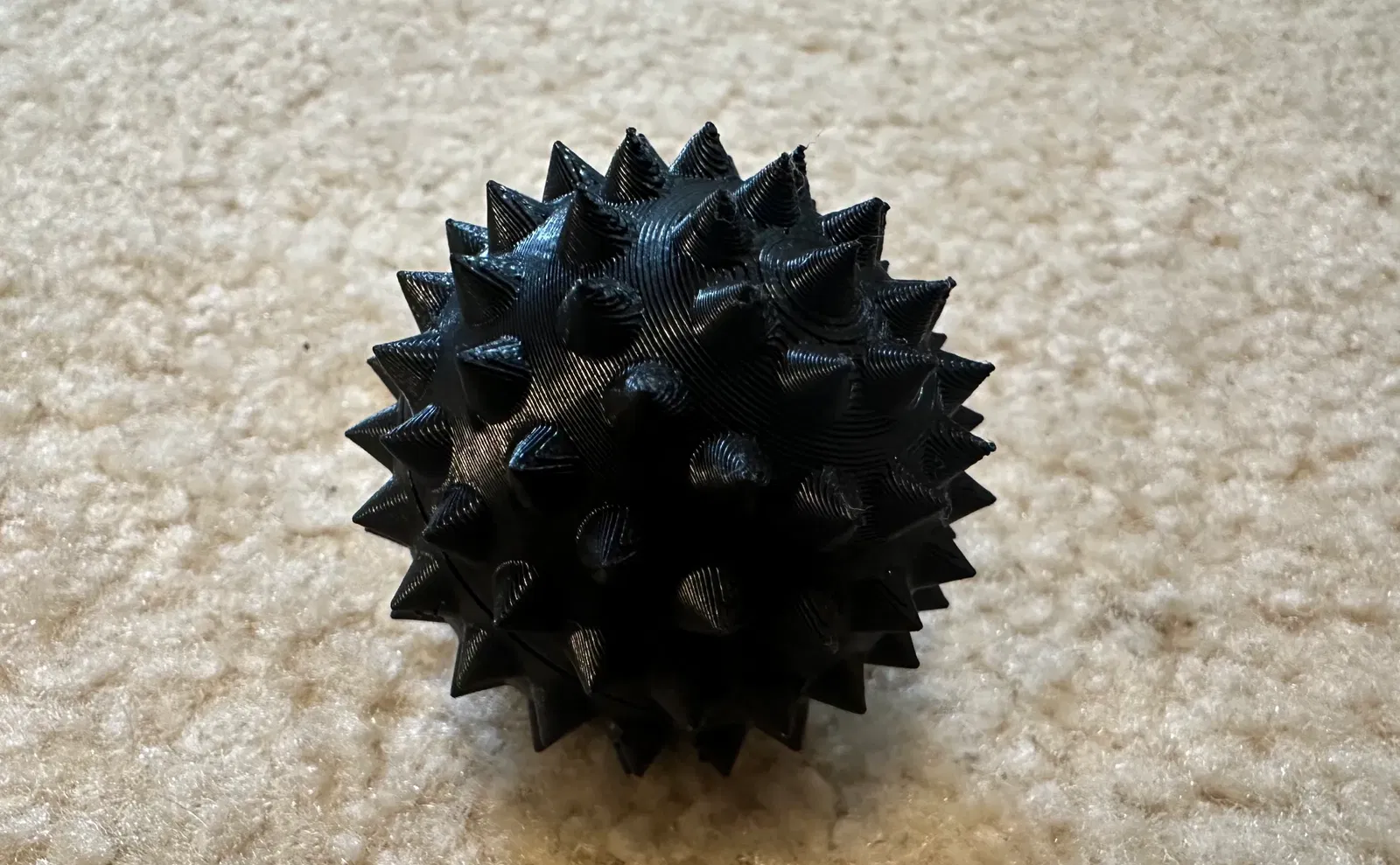 Cục spike ball fidget này cho cảm giác chạm đã lắm nè. Nhớ là mấy cái gai trên cục này có thể hơi nhọn tùy theo bạn in nha, nên mài bớt xuống cho vừa ý nếu mấy đầu gai nhọn quá khó chịu khi chạm vào.