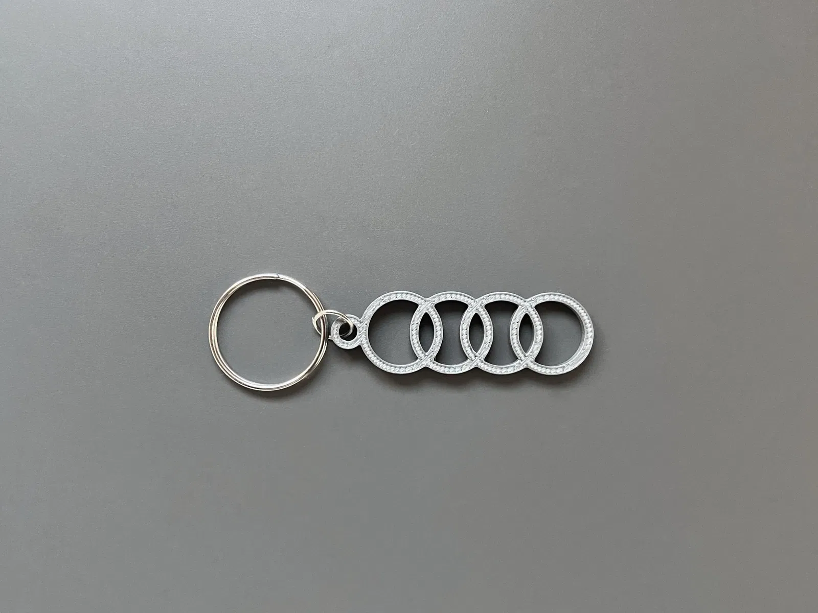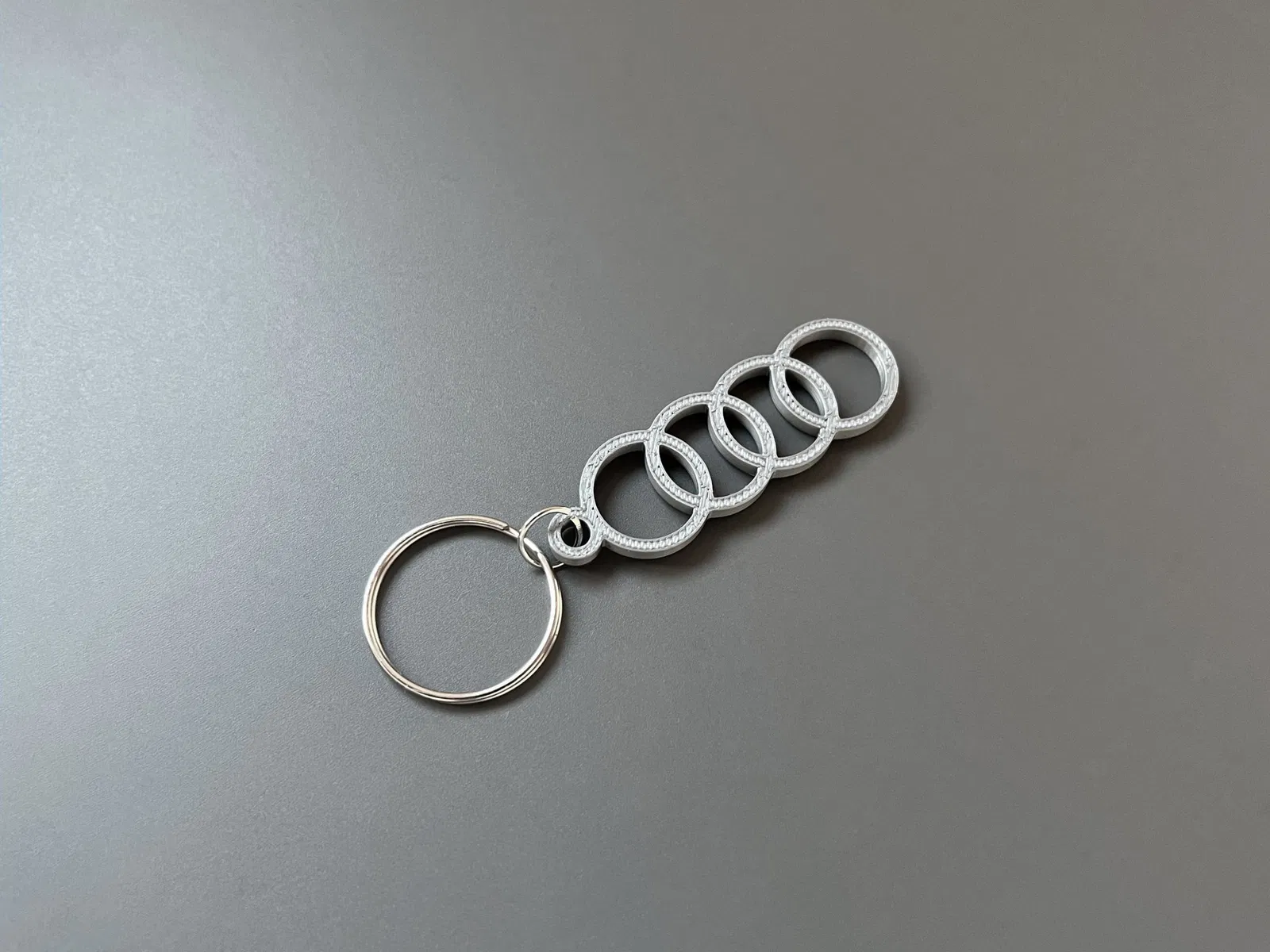 Móc khóa thương hiệu Audi, thiết kế đơn giản dễ in, tiết kiệm vật liệu. Có thể tùy chỉnh kích thước để đeo cho thoải mái và bớt cồng kềnh hơn khi sử dụng hàng ngày.