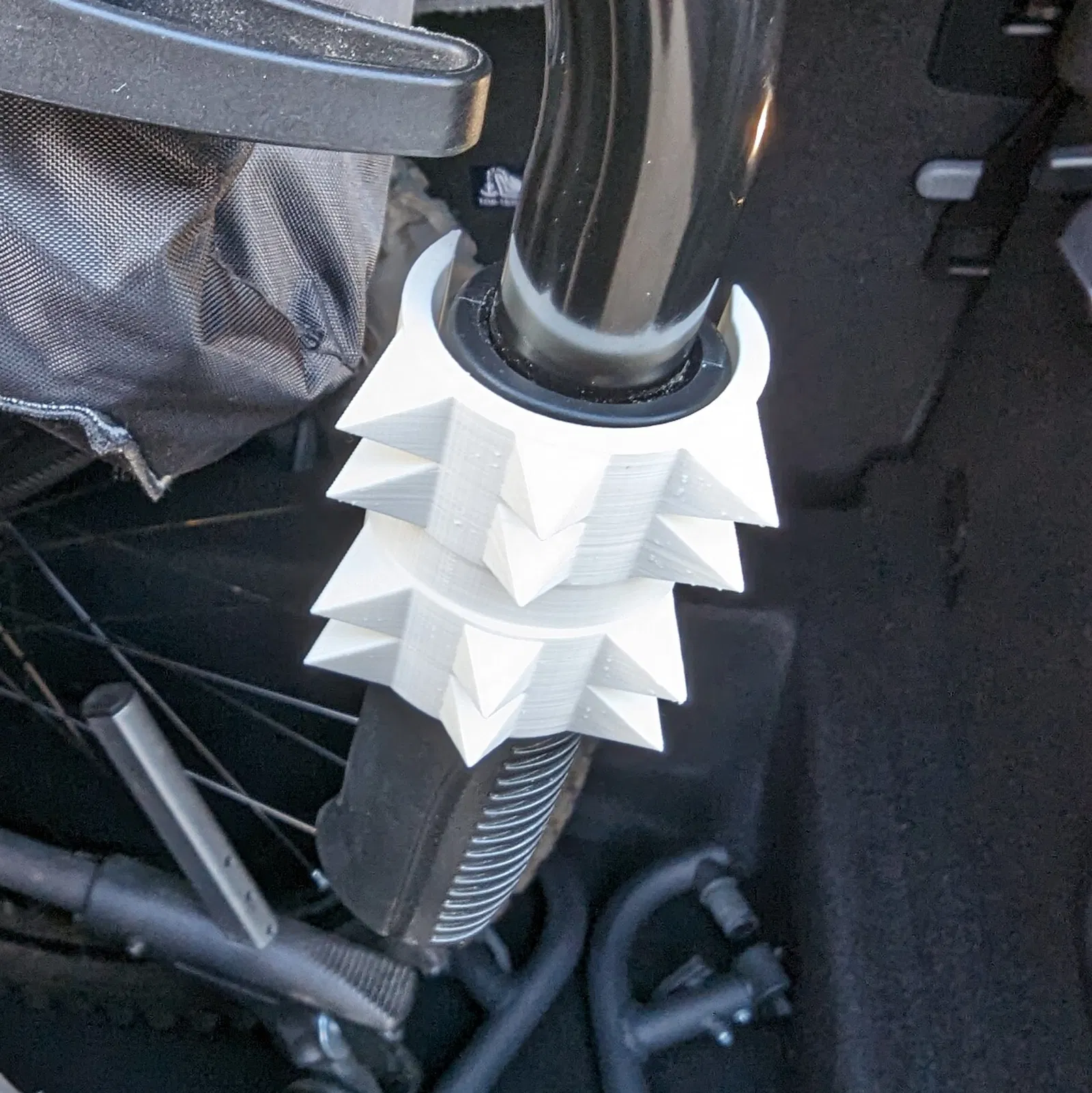 Một cái vỏ có gai để gắn vào tay nắm xe lăn và ngăn chặn những người di chuyển xe lăn của người dùng mà không có sự đồng ý.