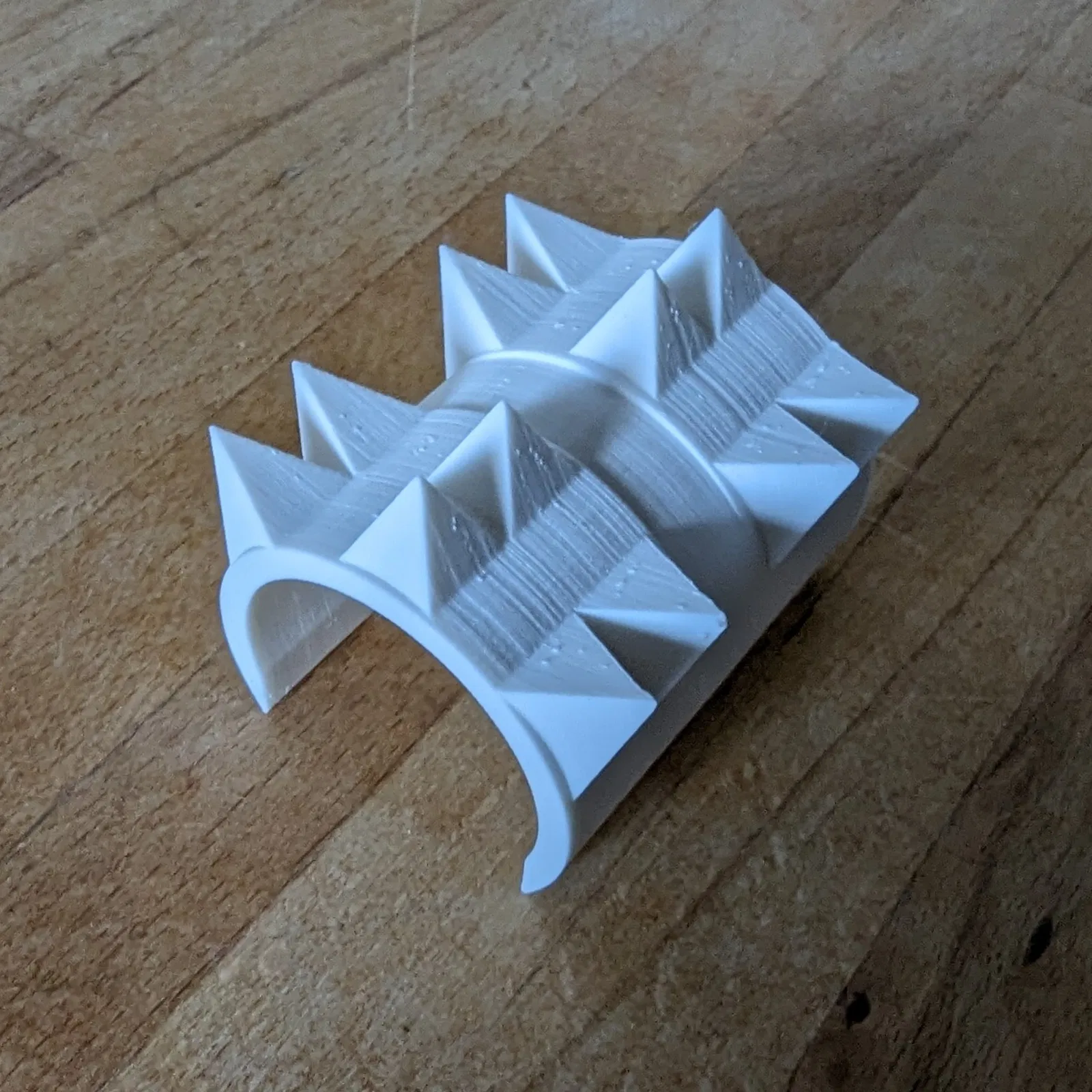 Tùy thuộc vào máy in và hướng in trên bàn in của bạn, tôi khuyên bạn nên in với chế độ hỗ trợ (supports) và/hoặc vành đệm (brim). Tôi đã in cái này theo chiều dọc với hỗ trợ cho phần gai và nó đã ra hoàn hảo trên máy Ender 3 của tôi với trình cắt lớp Prusa.