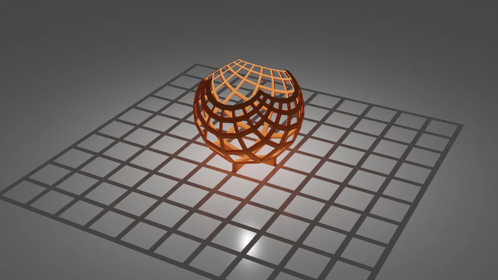 Một ví dụ về phép chiếu lập thể. Khi đặt một điểm sáng gần Cực Bắc của hình cầu, một lưới sẽ được chiếu trong bóng tối, tạo ra hiệu ứng độc đáo cho mô hình 3D của bạn.