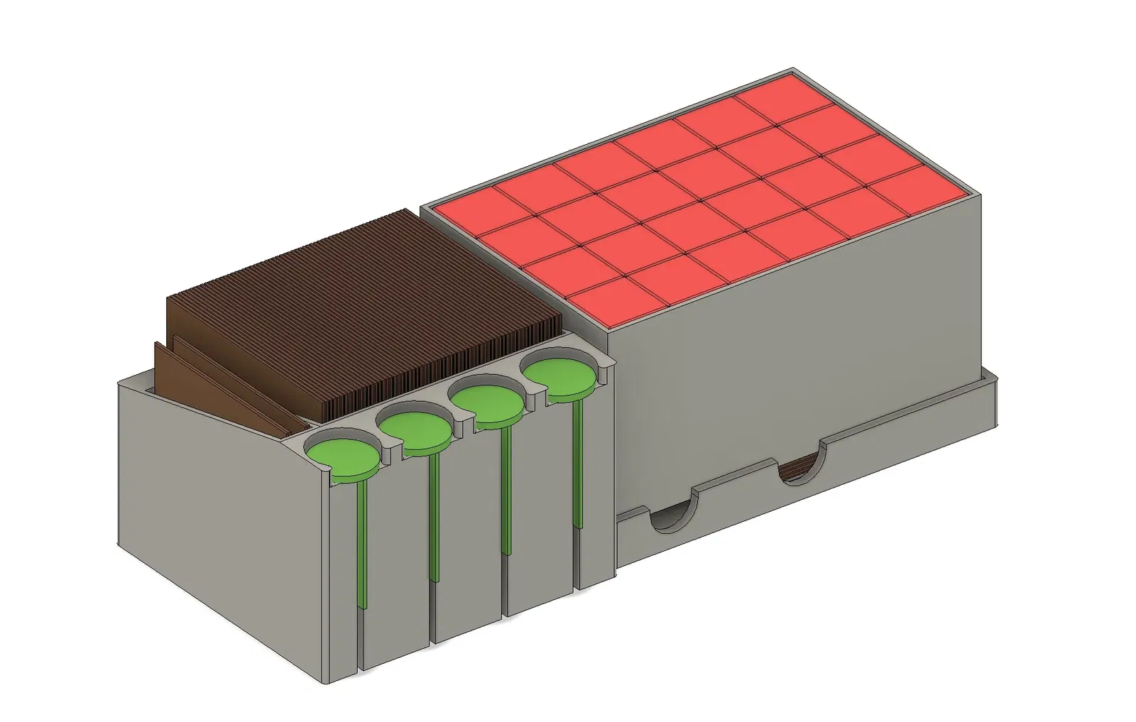 Mọi bộ phận của trò chơi đều có chỗ trên bộ tổ chức, nhưng các thẻ đặt khối và thẻ bedrock bên dưới chúng. Tôi muốn cái này để vào trong hộp, vì nó không thể chứa sách luật và những bộ phận lớn để sắp xếp các khối. Tôi không tìm được cách nào để sắp xếp chúng.