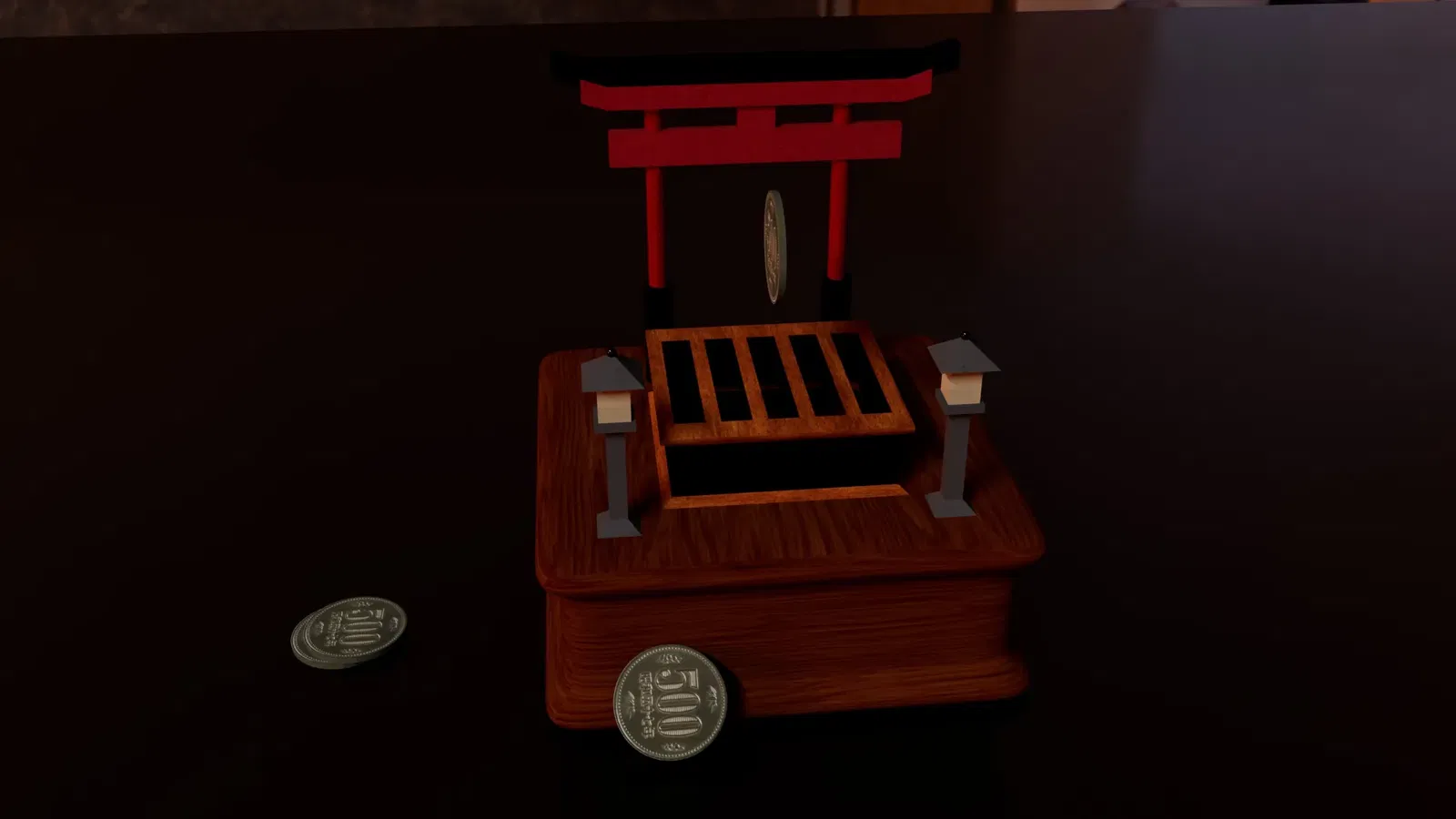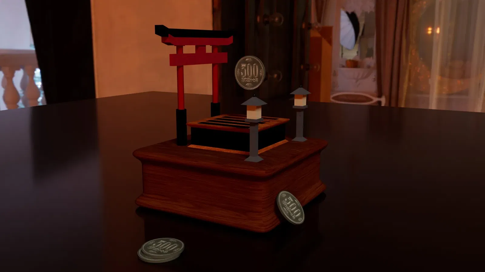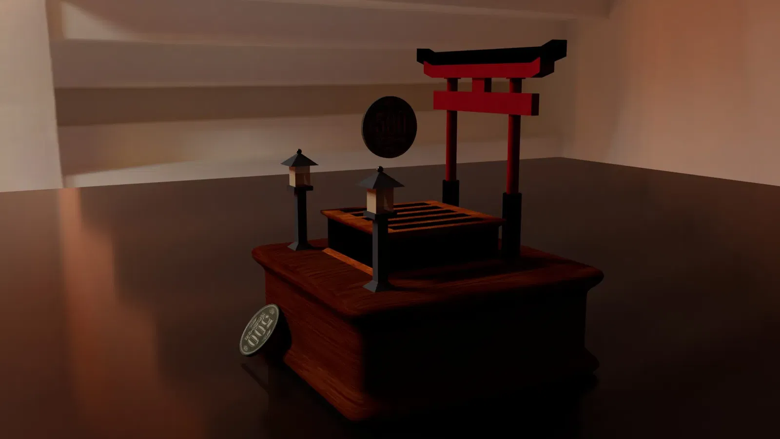 Heo đất Saisen Shrine dùng để cất giữ tiền tiết kiệm, và ý tưởng đằng sau thiết kế này đến từ những người dân Nhật Bản đến thăm đền thờ để cầu nguyện. Ý tưởng đằng sau kỹ thuật này là để người Nhật cầu nguyện, họ phải ném tiền xu vào Saisen thay vì gửi tiền vào đó. Do đó, tôi đã áp dụng cùng một ý tưởng rằng bất kỳ ai cũng có thể sử dụng mô hình này để bỏ tiền xu vào và thực hiện điều ước của mình, giống như cách mọi người sử dụng tiền của họ để mua những thứ họ muốn.