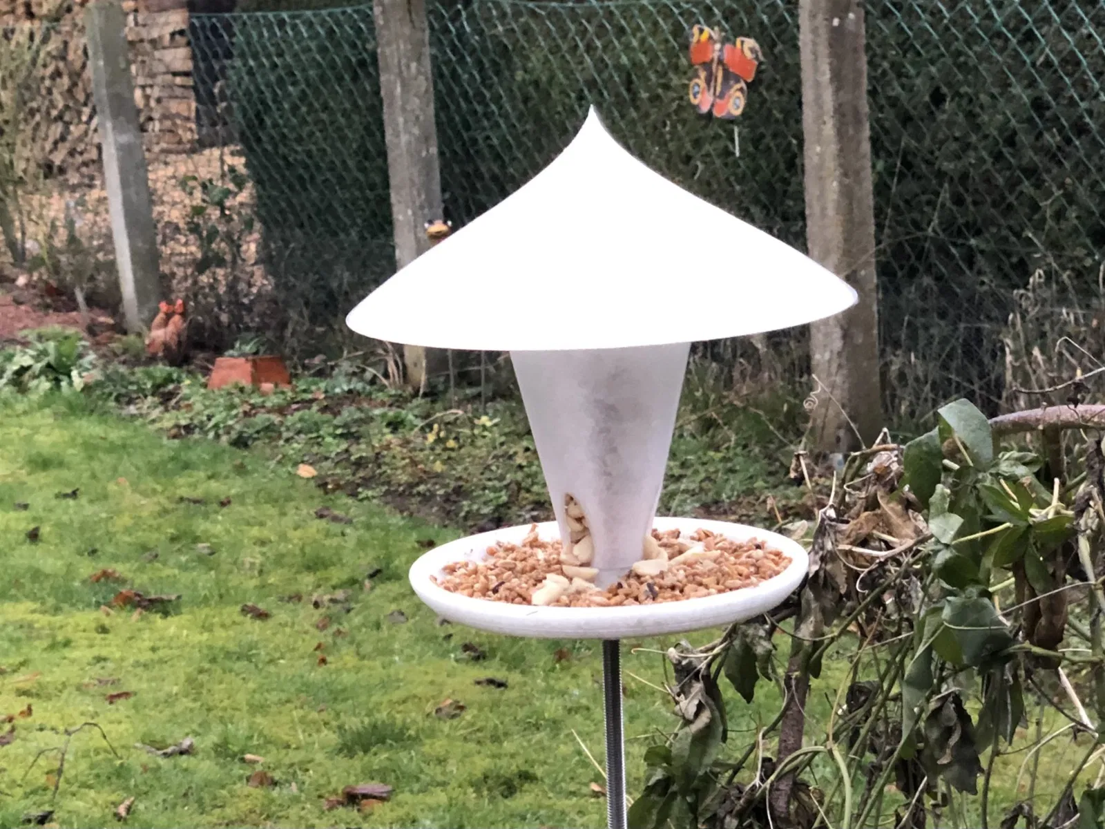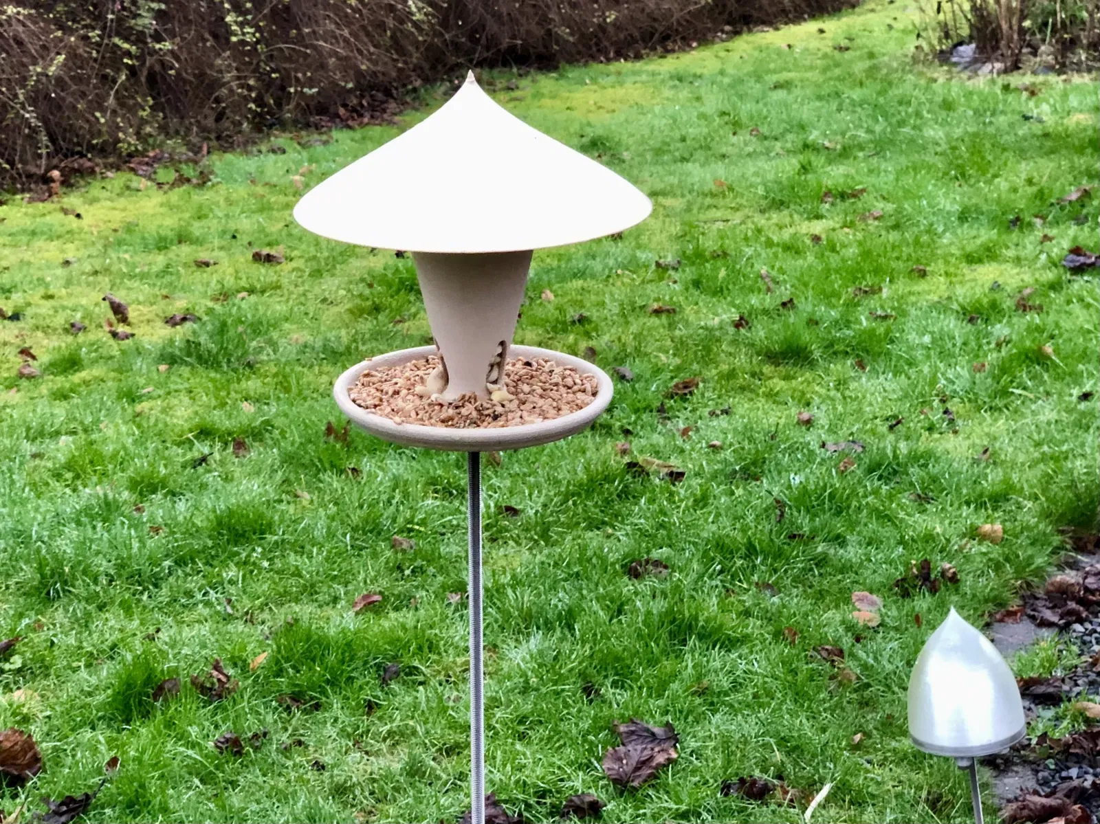 Một ngôi nhà cho chim ăn, có chức năng như silo và được bảo vệ khỏi mưa, để gắn lên thanh ren M8.