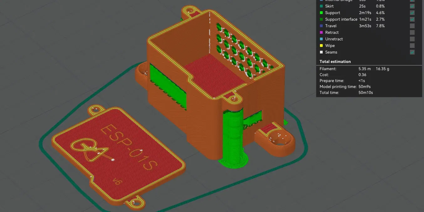 -I originally made this for my step dad for his ESP-01S he needed access from the bottom for two thermostats to control when a fan would turn on in the attic to ventilate the hot air I unfortunately do not have too much electrical understanding I'm trying to learn so here's this case for anybody who has use for it.