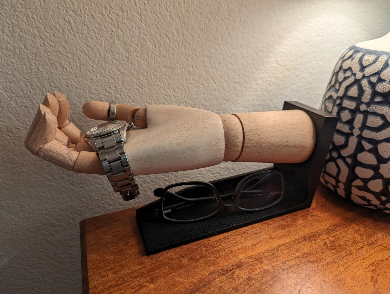 Cái đế này kết hợp với Handskalad từ Ikea, mang đến giải pháp lưu trữ và trưng bày độc đáo, rất hợp để đặt trên bàn cạnh giường, đựng đồng hồ, hoặc các vật dụng cá nhân.