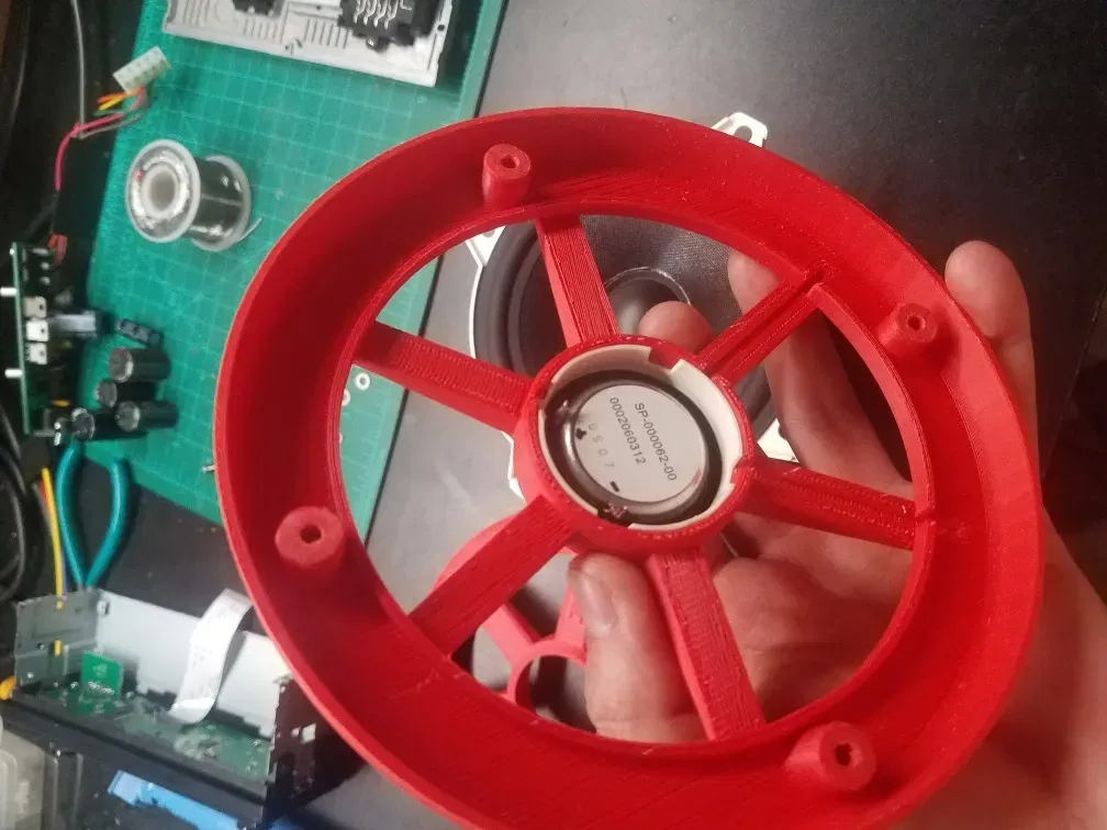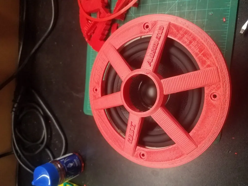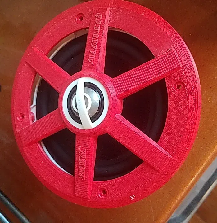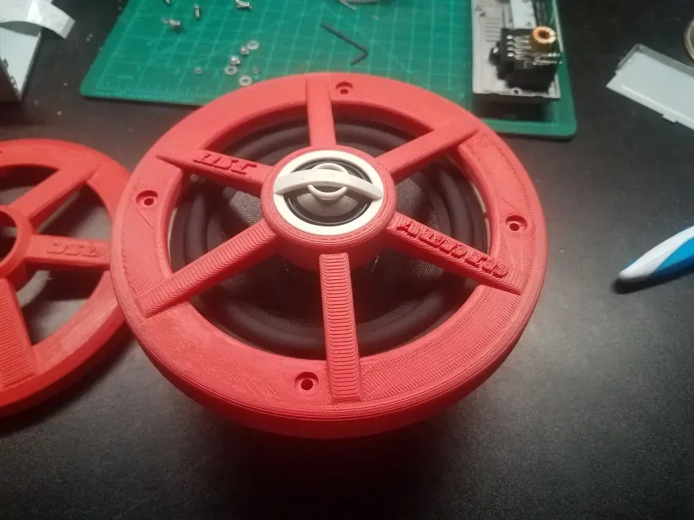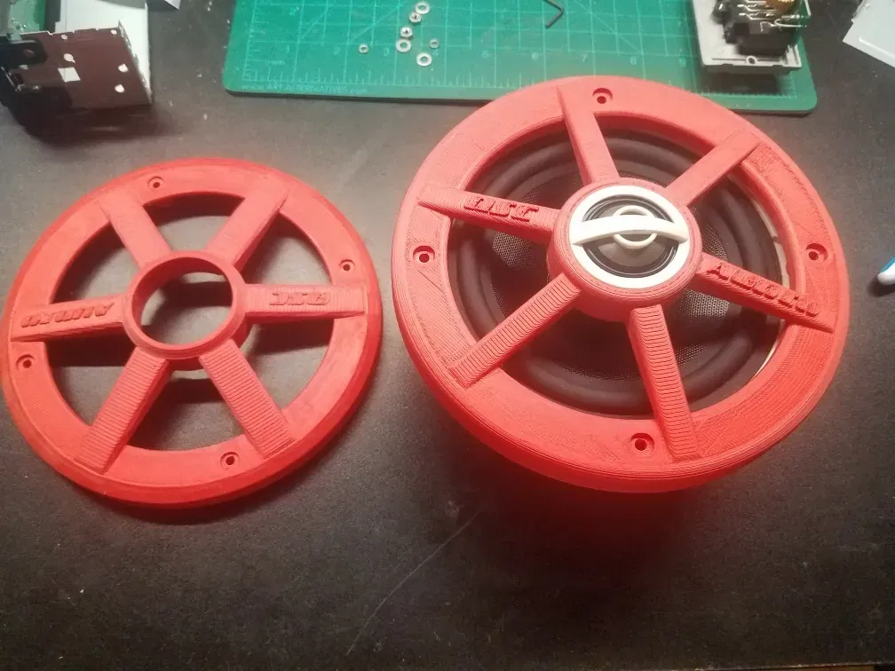 Tui có một cặp loa QSC 5.25 inch muốn độ cho xe hơi nhưng lưới zin không vừa. Tui đã tự thiết kế lưới tản nhiệt mới, có ngàm gắn loa tweeter 40mm, in bằng ABS đỏ. Có 2 mẫu với tay đỡ dày mỏng khác nhau, có chỗ giấu dây loa tweeter. Nhận làm theo yêu cầu.