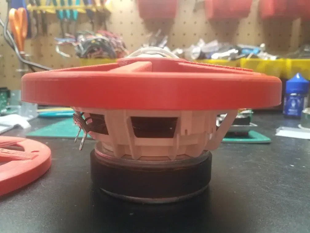 In bằng ABS đỏ, sản phẩm làm ra khá tốt. Tui có 2 mẫu có thể dùng với bất kỳ loa 5.25 inch nào, hoặc bạn cũng có thể thêm loa tweeter 40mm. Một mẫu có phần tay đỡ dày hơn mẫu kia. Các rãnh dẫn dây cho cáp loa tweeter được giấu dưới các tay đỡ. Nếu có bất kỳ câu hỏi nào, xin cứ cho tui biết. Vui lòng đăng những sản phẩm bạn làm được nhé.