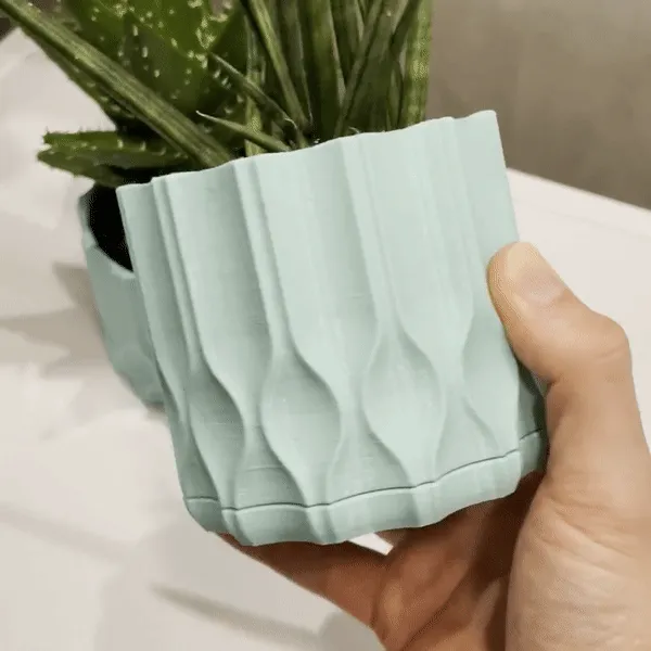 Mẫu chậu cây hình sóng độc đáo, kèm khay hứng nước tiện lợi. Giải pháp cho cây trồng hay bị úng nước. Dễ dàng đổ bỏ nước thừa từ khay, giữ cho cây luôn khỏe mạnh. Tuyệt vời cho việc trang trí nhà cửa và khu vườn.