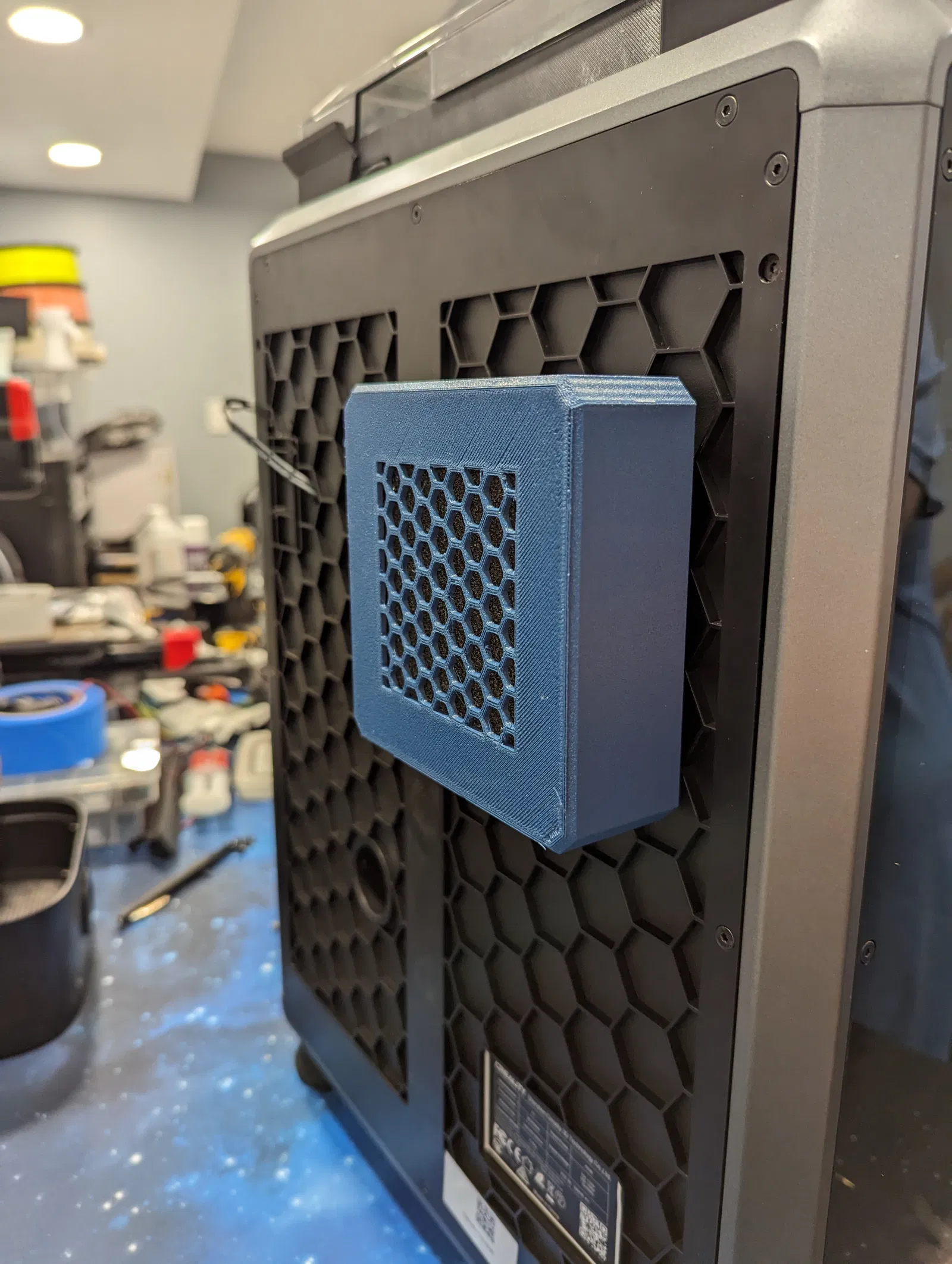 Nó tận dụng các đường viền ở mặt sau của máy in để căn chỉnh quanh quạt hút 60mm.