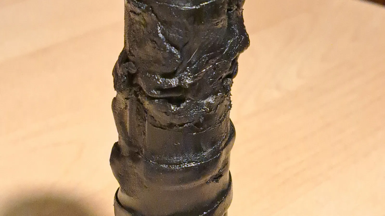 Tay nắm nguyên bản Cannondale D2 single lock-on của tôi rất mềm và êm ái. Cầm nắm cực kỳ sướng. Nhưng sau một thời gian, chúng nó chảy nhão ra như mứt như mấy bạn thấy trong hình.