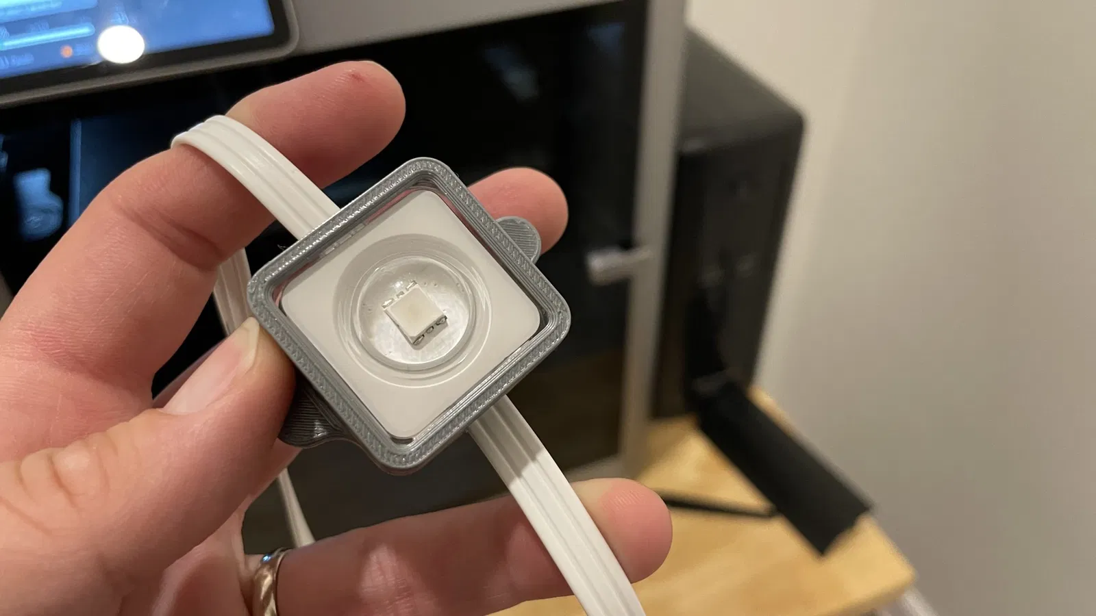 Giải pháp gắn đèn Govee RGBIC ngoài trời thay thế keo dán. Có hai kiểu: đế nam châm cho từng bóng đèn và đế che cả dây điện, cùng tùy chọn gắn bằng vít. Tối ưu hóa việc giấu dây và phối màu với ngôi nhà. File .step có sẵn để tùy chỉnh kích thước nam châm.