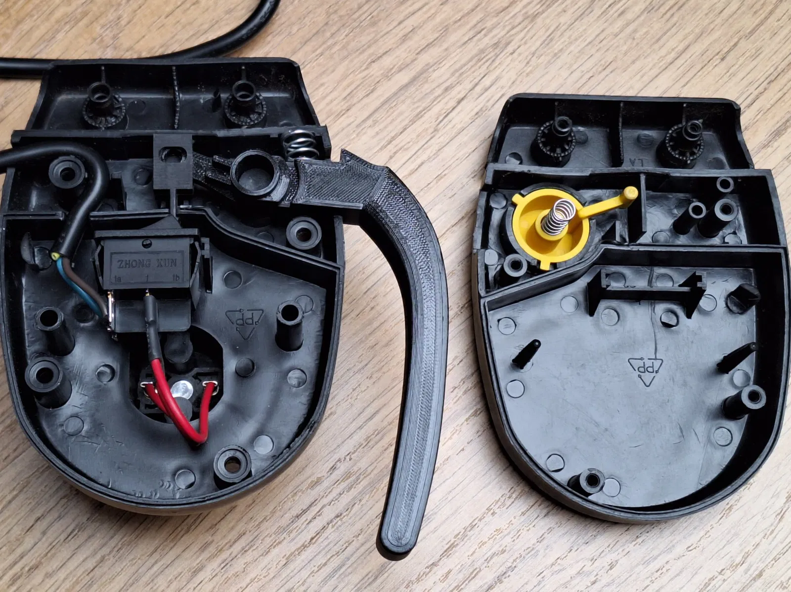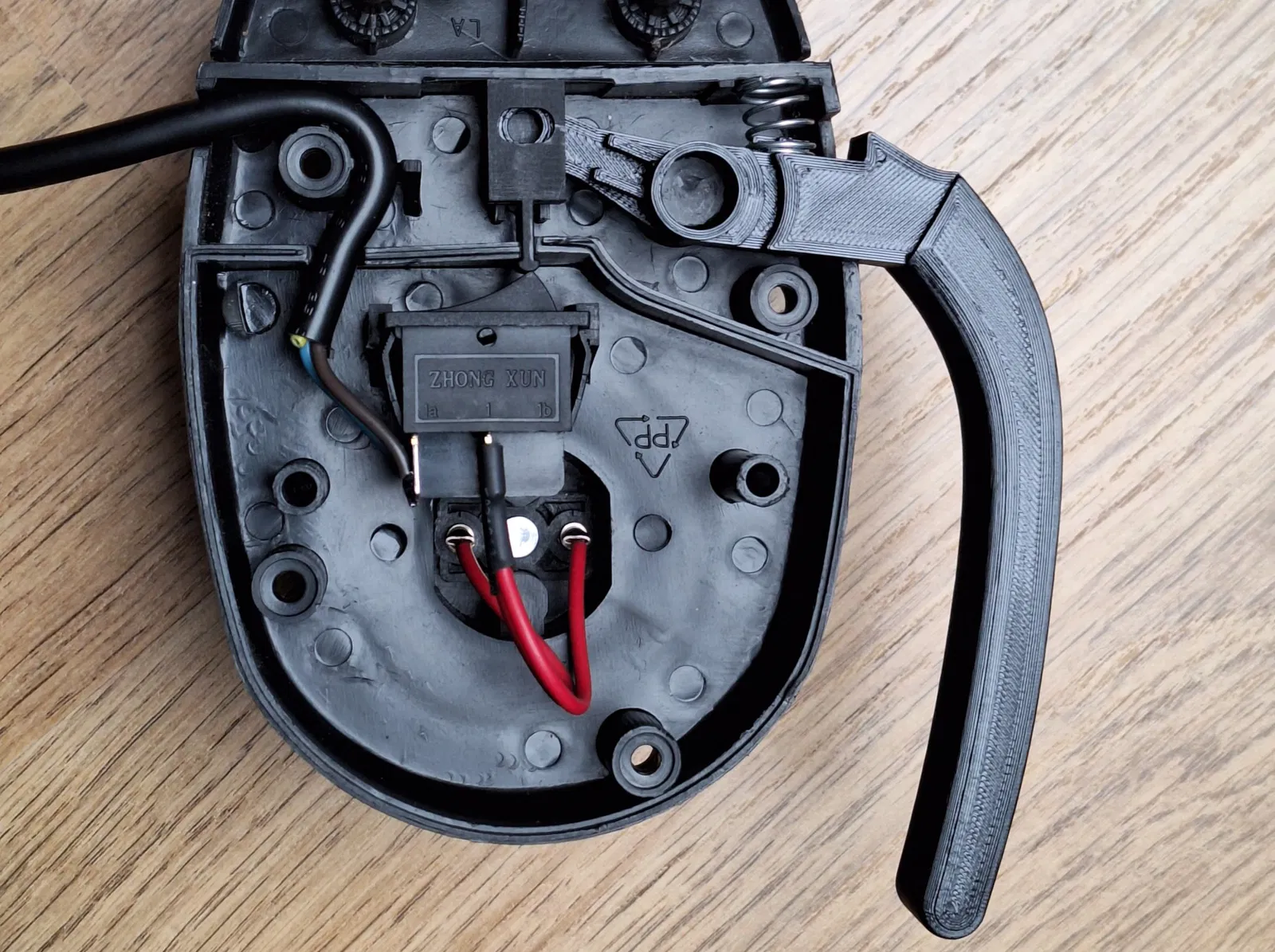 Thế là tui mở cái hộp công tắc ra và hết hồn khi thấy thiết kế phức tạp kinh khủng của cái tay cầm bên trong.