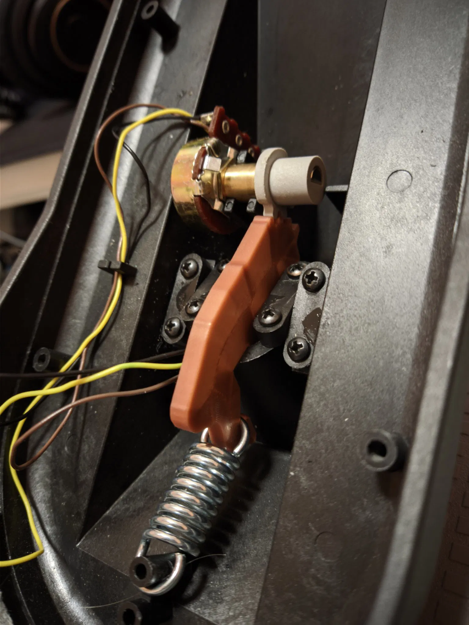 Cái bộ phận giữ bàn đạp bánh lái bị gãy do tui thay lò xo nặng hơn vô. Tui sẽ bổ sung thêm mấy mẫu nữa nếu có cái nào hư nữa.