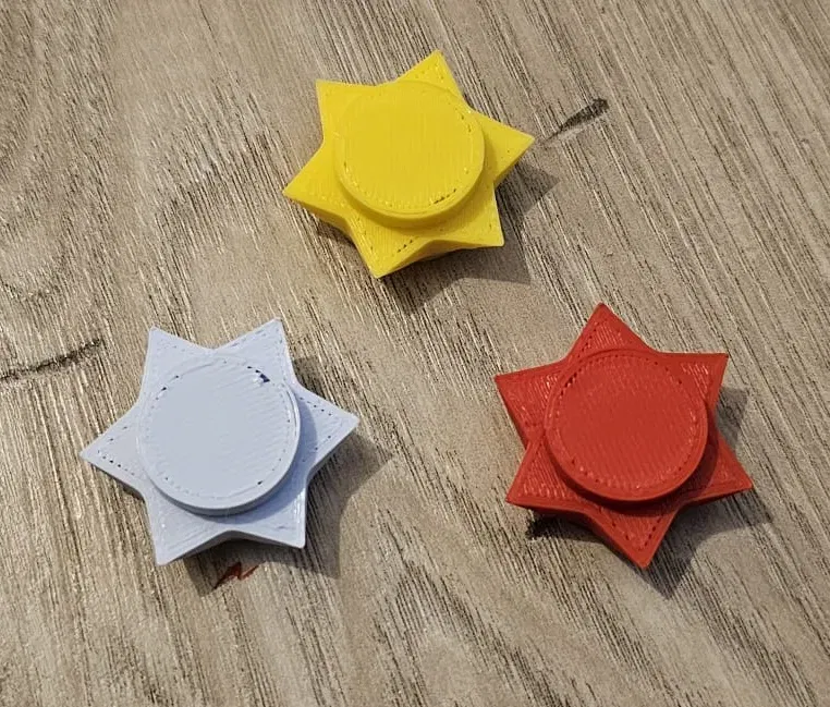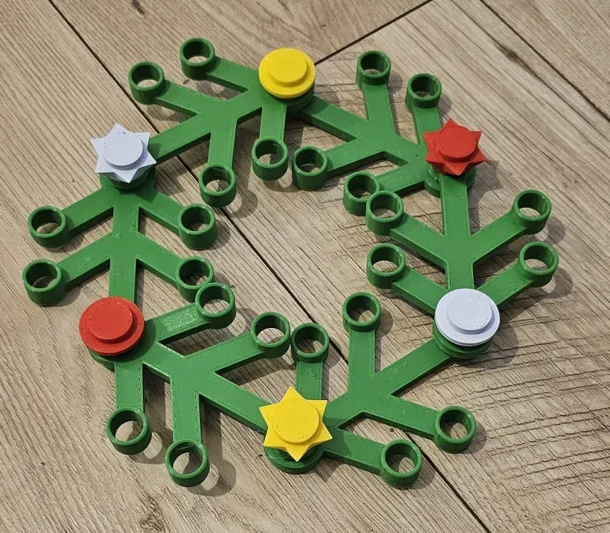 Chốt Lego hình ngôi sao trang trí cho vòng nguyệt quế. Dù có thể hơi lỏng trên một số máy in, chúng vẫn giữ chắc và không rơi ra khi úp ngược. Tuy nhiên, để đảm bảo độ bền, bạn nên dán chúng cố định vào vòng nguyệt quế sau khi hoàn thiện.