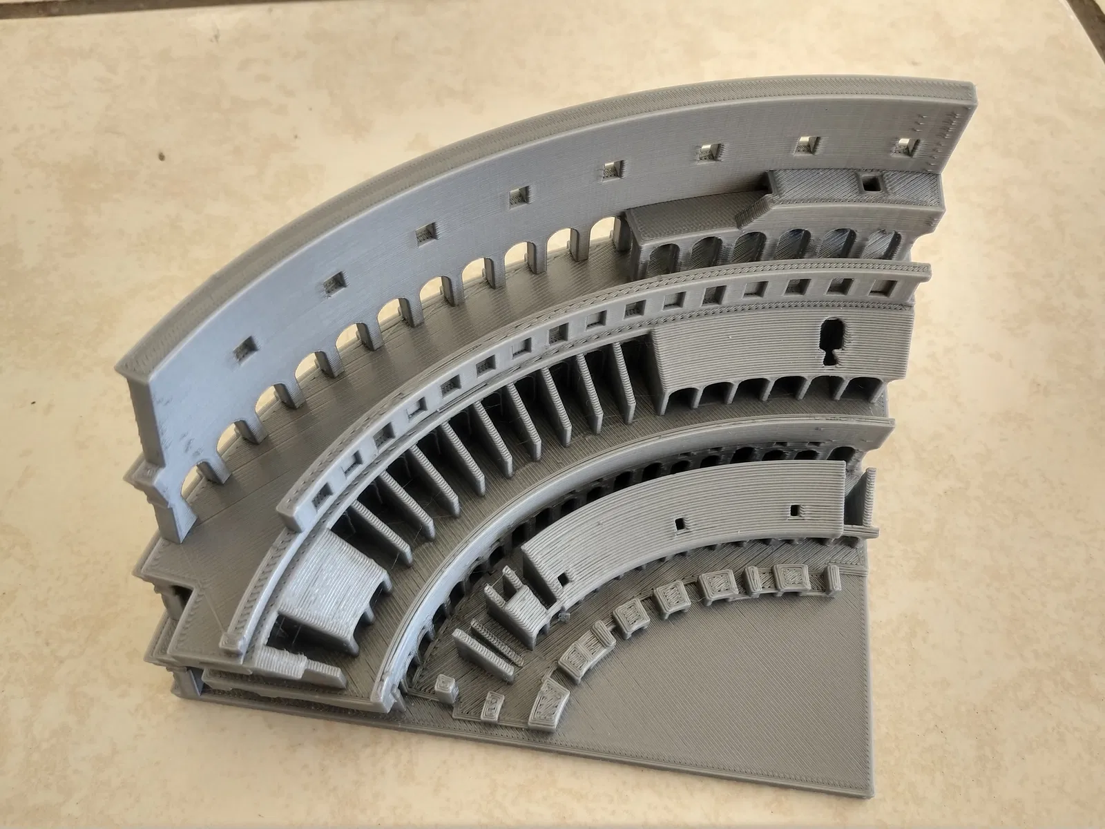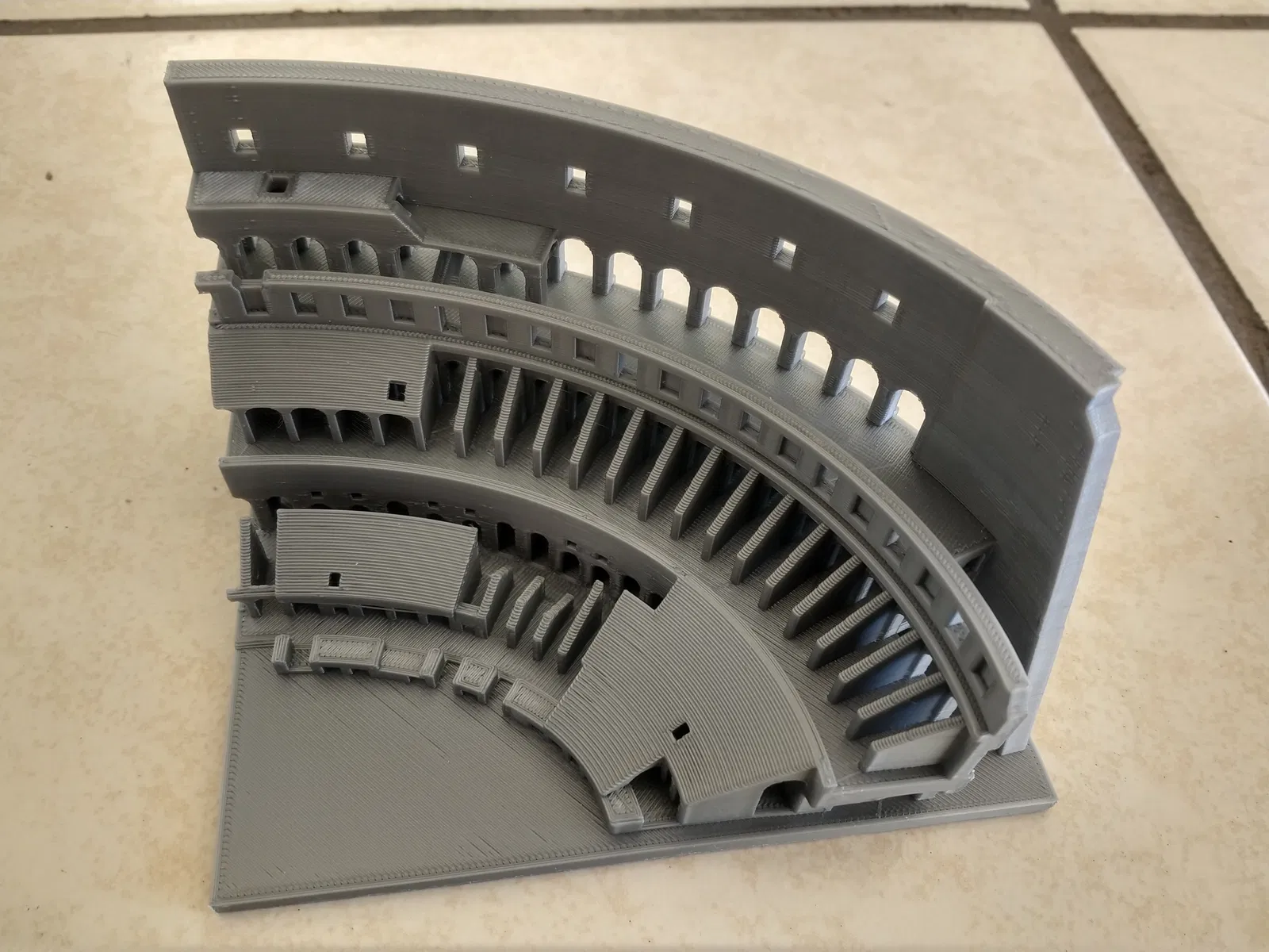 Đấu trường La Mã với chi tiết đẹp ở tỉ lệ 1:500. Đấu trường được chia tỉ lệ và chia làm 4 phần để có thể in trên bất kỳ máy in 3D nào với kích thước in tối thiểu là 220x220x250 mm.