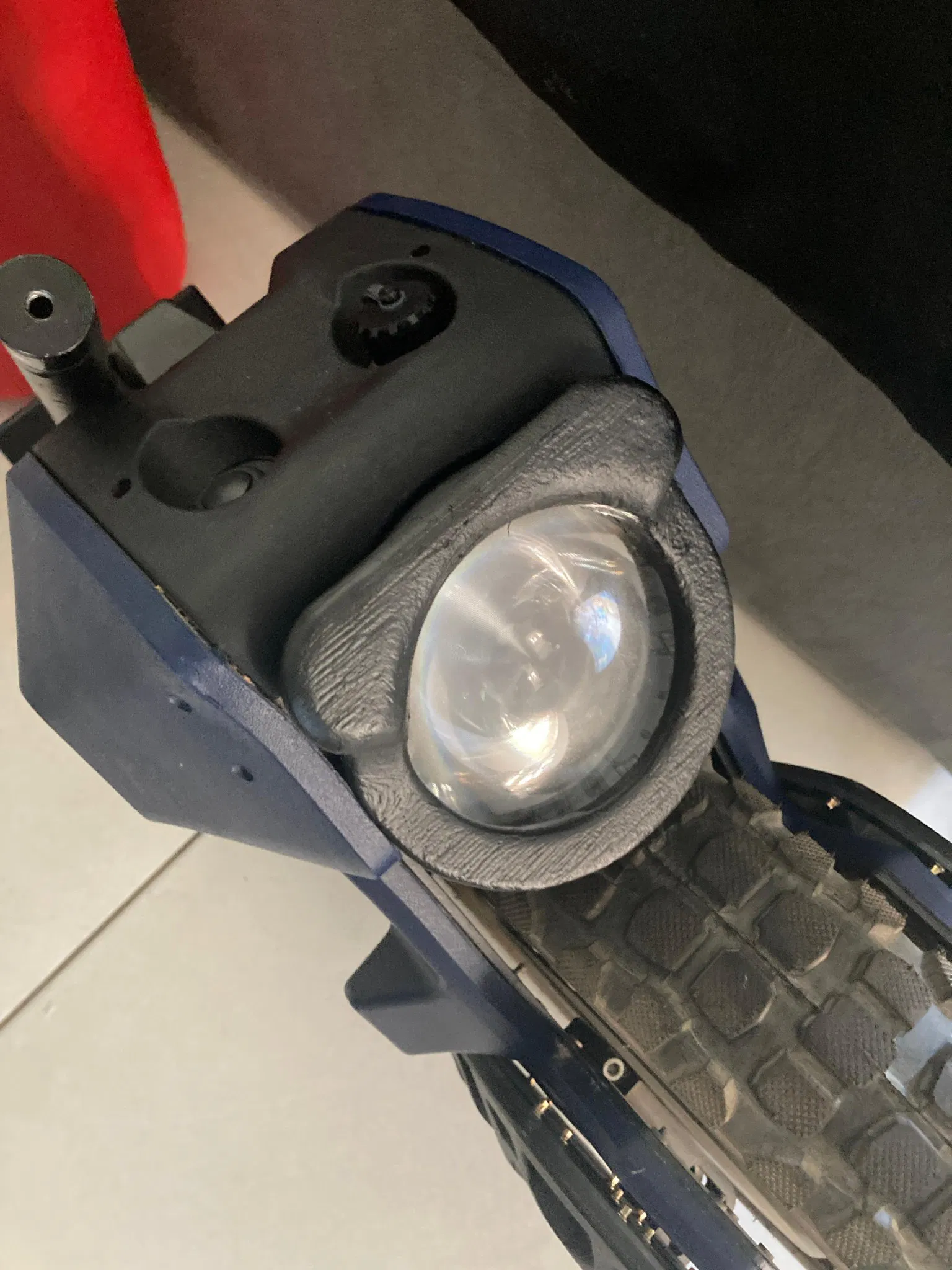 Cái này là cái chụp đèn pha cho xe A2 nha anh em. Có hỗ trợ in support, có thể dùng băng keo hai mặt để dán. Hầu hết các vật liệu in thông thường đều xài được hết, infill nhiêu cũng được. Bản cập nhật V2 rộng hơn để dựng xe ổn định hơn khi đặt đèn pha xuống đất.