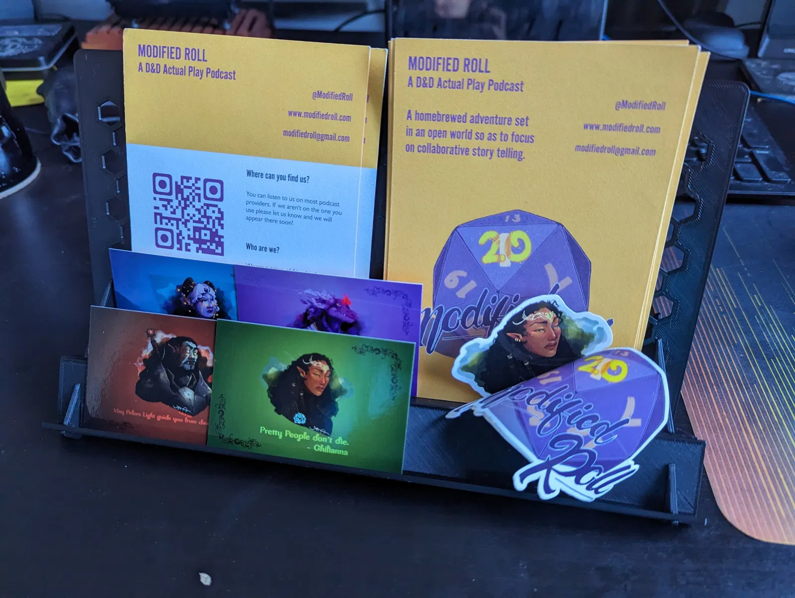 Một kệ trưng bày nhỏ gọn, có thể tháo lắp, được thiết kế để sử dụng tại các hội chợ hoặc triển lãm nhằm trưng bày danh thiếp, sticker, tờ rơi, v.v.