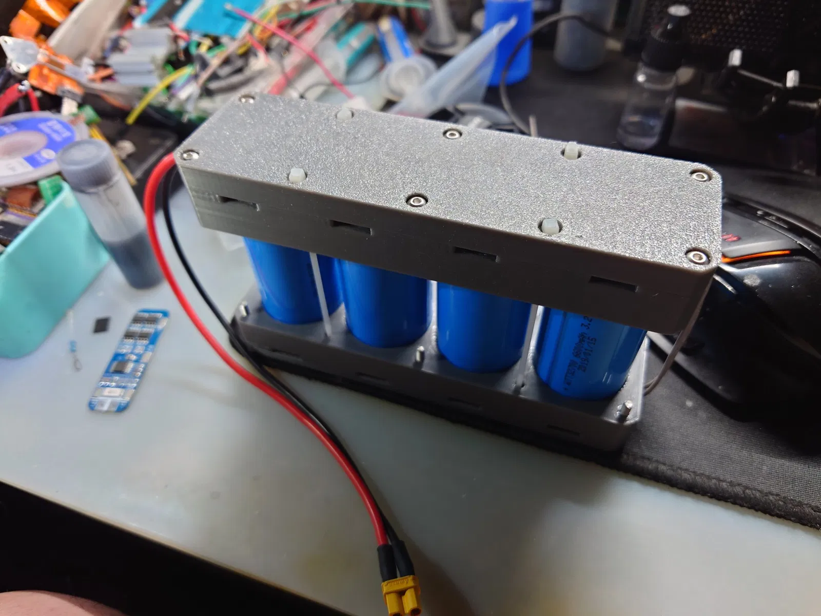 Cái đế giữ pin 4S lithium iron phosphate size 32700 này là để đựng 4 cục pin 32700 lại với nhau, thường dùng để làm bộ nguồn di động cho tiện ha.