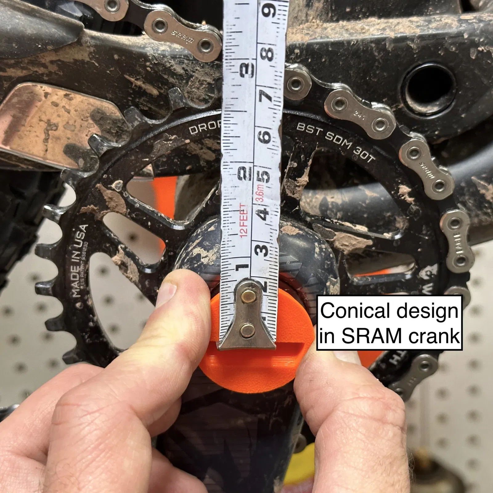 Dụng cụ đo tâm hình nón này dùng với thước dây để đo từ tâm của bất kỳ lỗ lõm nào từ 6-30mm. Phù hợp với bu lông cốt giữa 8mm, bu lông cốt Shimano và trục rỗng. Dễ dàng in ấn mà không cần vật liệu hay cài đặt đặc biệt, không cần đế chống.