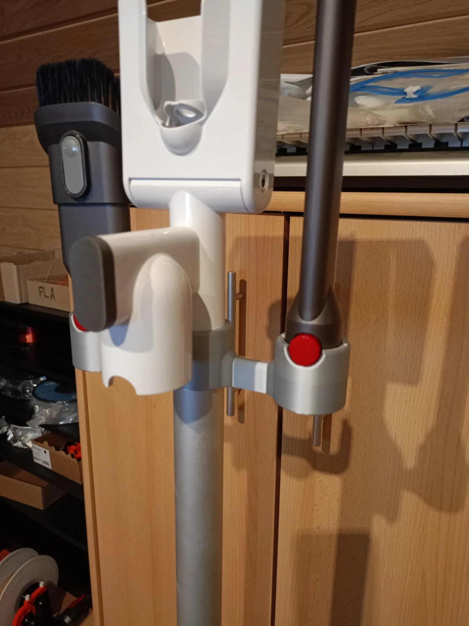 Giá đỡ đồ nghề Dyson “Grab and Go Dok” (V11, V15). Anh em chỉ cần trượt đế này vô ống là xong. Có thể gắn hướng lên hoặc xuống, thậm chí gắn 2 cái luôn. Nếu hơi lỏng thì dùng vít M3 siết lại.